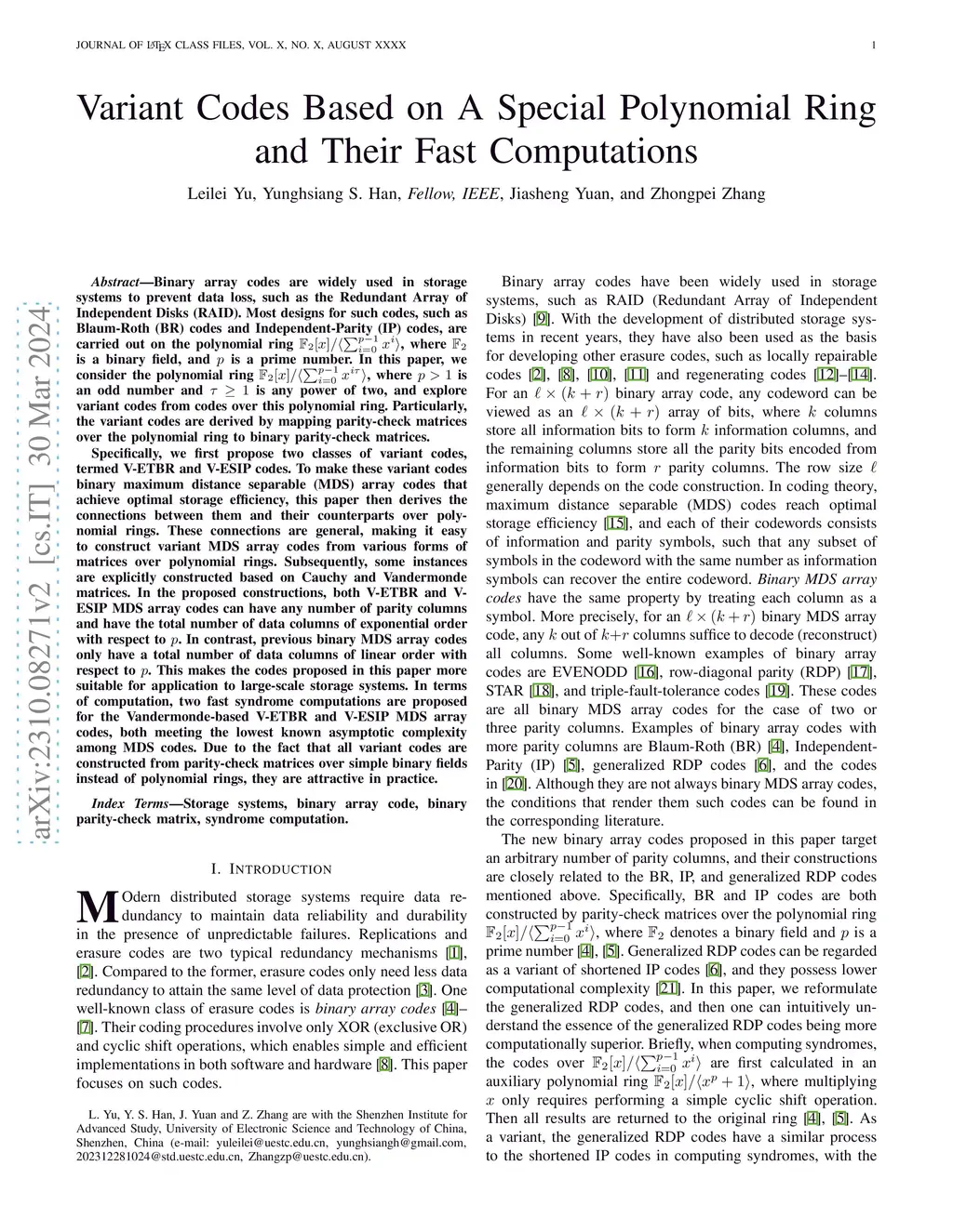 Variant Codes Based on A Special Polynomial Ring and Their Fast