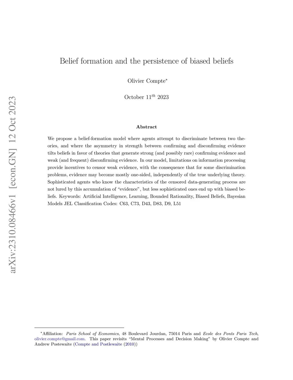 Belief formation and the persistence of biased beliefs