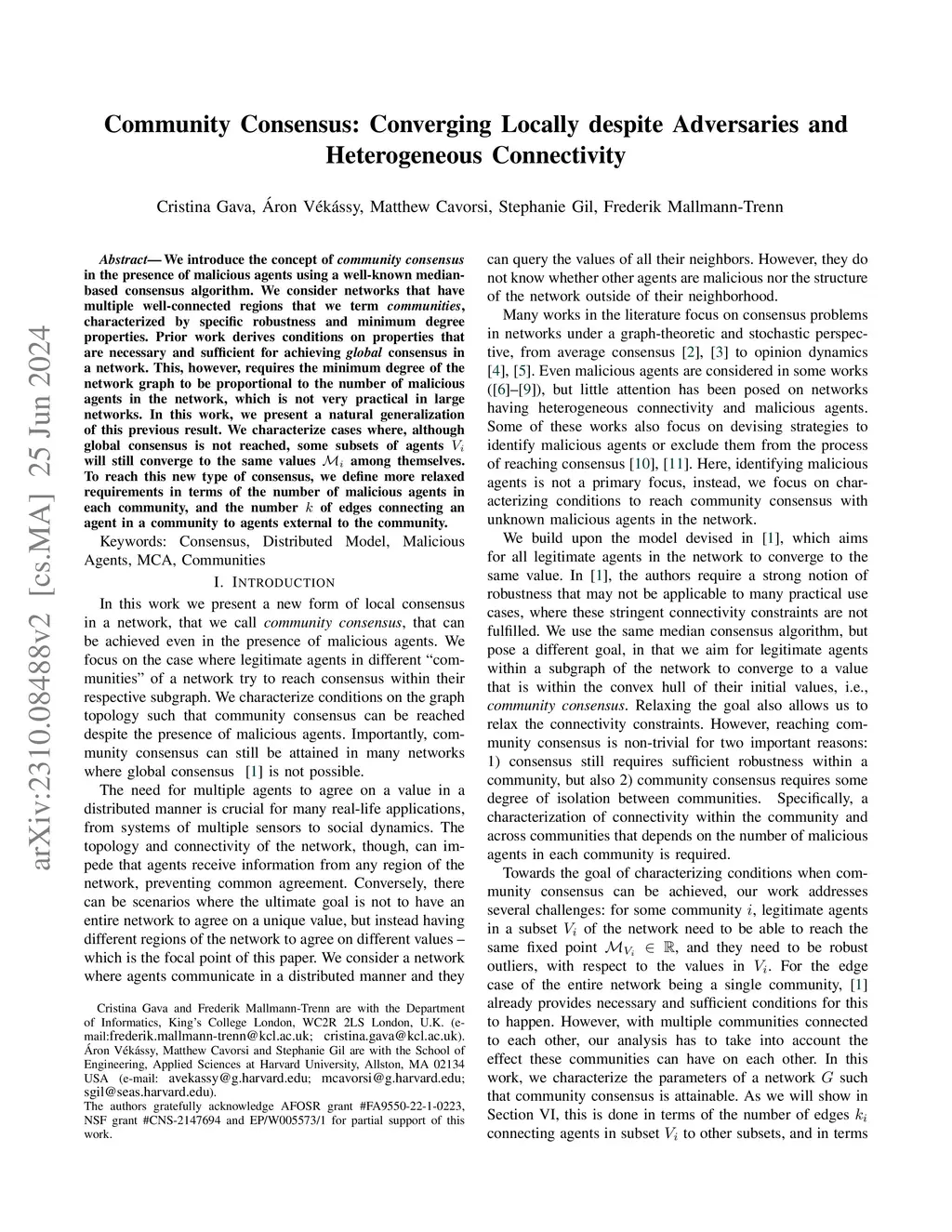 We introduce the concept of community consensus in the presence of malicious agents using a well-known median-based consensus algorithm. We consider networks that have multiple well-connected regions that we term communities, characterized by specific robustness and minimum degree properties. Prior work derives conditions on properties that are necessary and sufficient for achieving global consensus in a network. This, however, requires the minimum degree of the network graph to be proportional to the number of malicious agents in the network, which is not very practical in large networks. In this work, we present a natural generalization of this previous result. We characterize cases where, although global consensus is not reached, some subsets of agents will still converge to the same values among themselves. To reach this new type of consensus, we define more relaxed requirements in terms of the number of malicious agents in each community, and the number of edges connecting an agent in a community to agents external to the community.