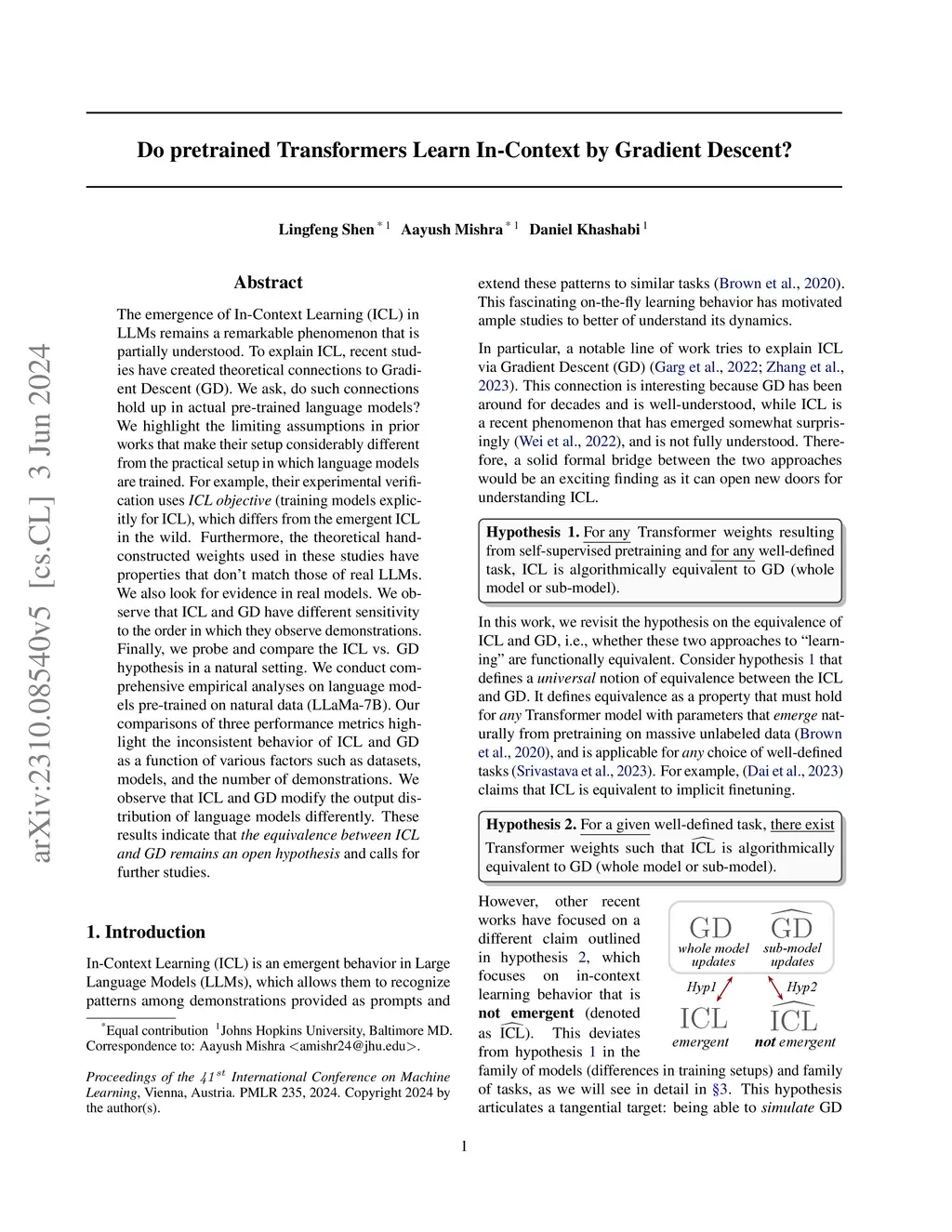 Revisiting the Hypothesis: Do pretrained Transformers Learn In-Context