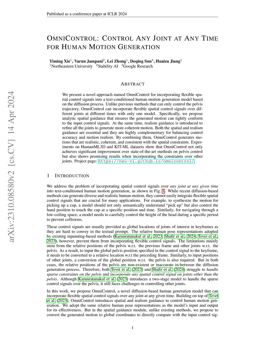 OmniControl: Control Any Joint at Any Time for Human Motion Generation