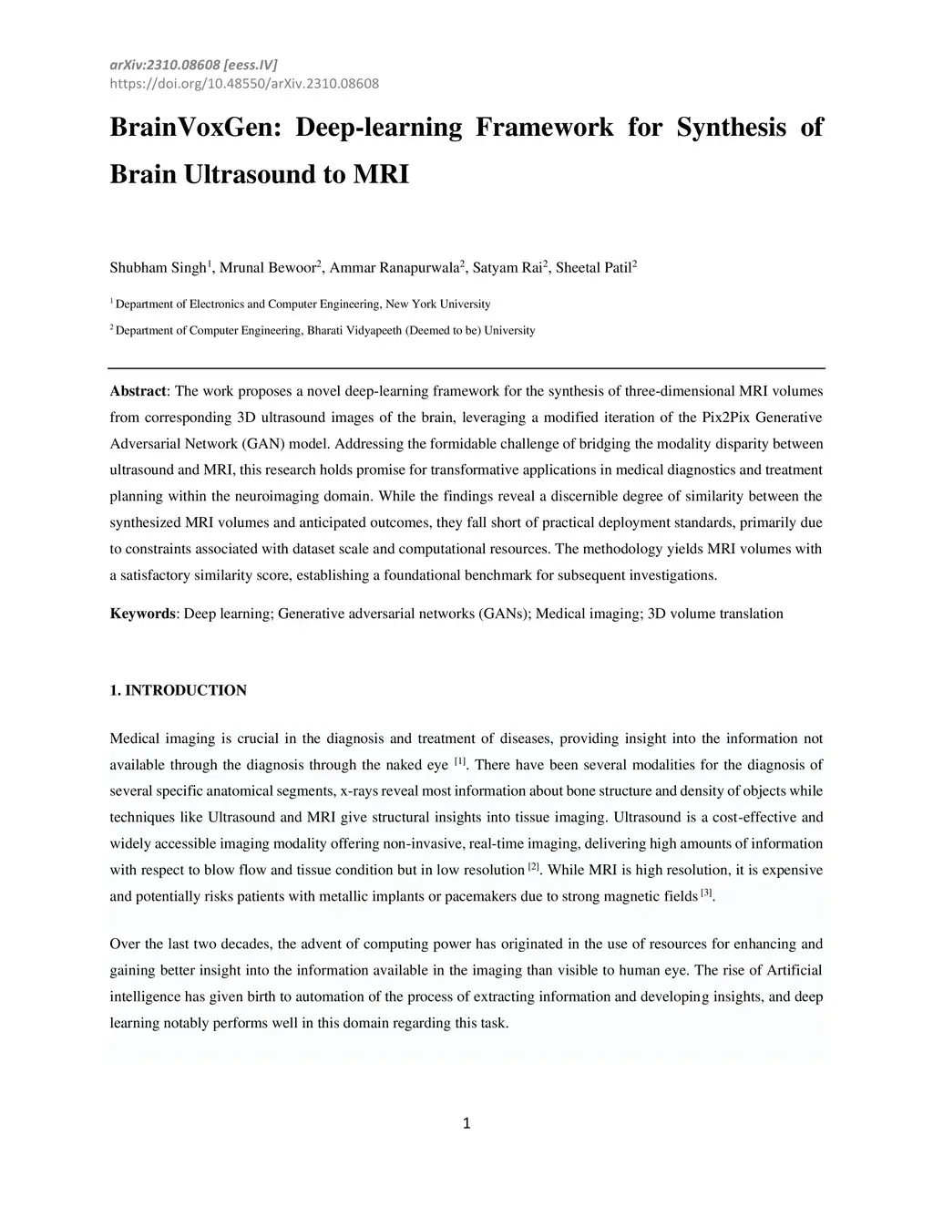 BrainVoxGen: Deep learning framework for synthesis of Ultrasound to MRI