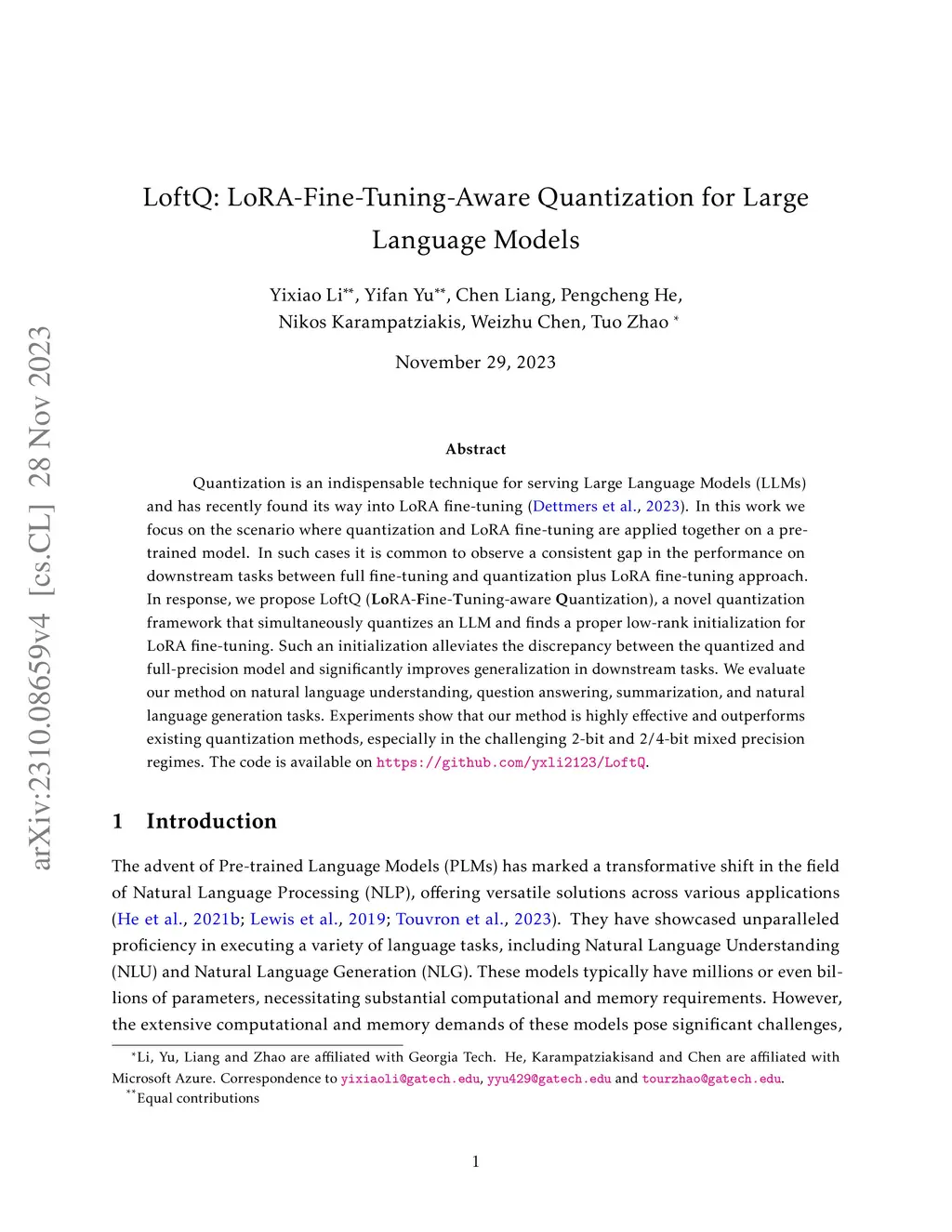 LoftQ: LoRA-Fine-Tuning-Aware Quantization for Large Language Models