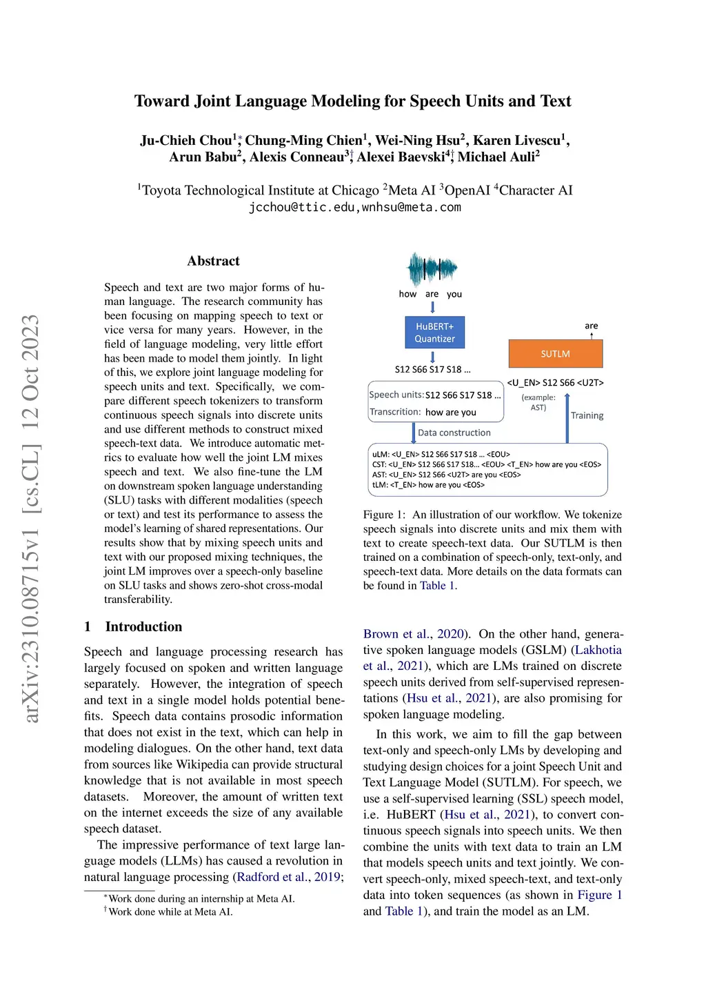 Speech and text are two major forms of human language. The research community has been focusing on mapping speech to text or vice versa for many years. However, in the field of language modeling, very little effort has been made to model them jointly. In light of this, we explore joint language modeling for speech units and text. Specifically, we compare different speech tokenizers to transform continuous speech signals into discrete units and use different methods to construct mixed speech-text data. We introduce automatic metrics to evaluate how well the joint LM mixes speech and text. We also fine-tune the LM on downstream spoken language understanding (SLU) tasks with different modalities (speech or text) and test its performance to assess the model's learning of shared representations. Our results show that by mixing speech units and text with our proposed mixing techniques, the joint LM improves over a speech-only baseline on SLU tasks and shows zero-shot cross-modal transferability.