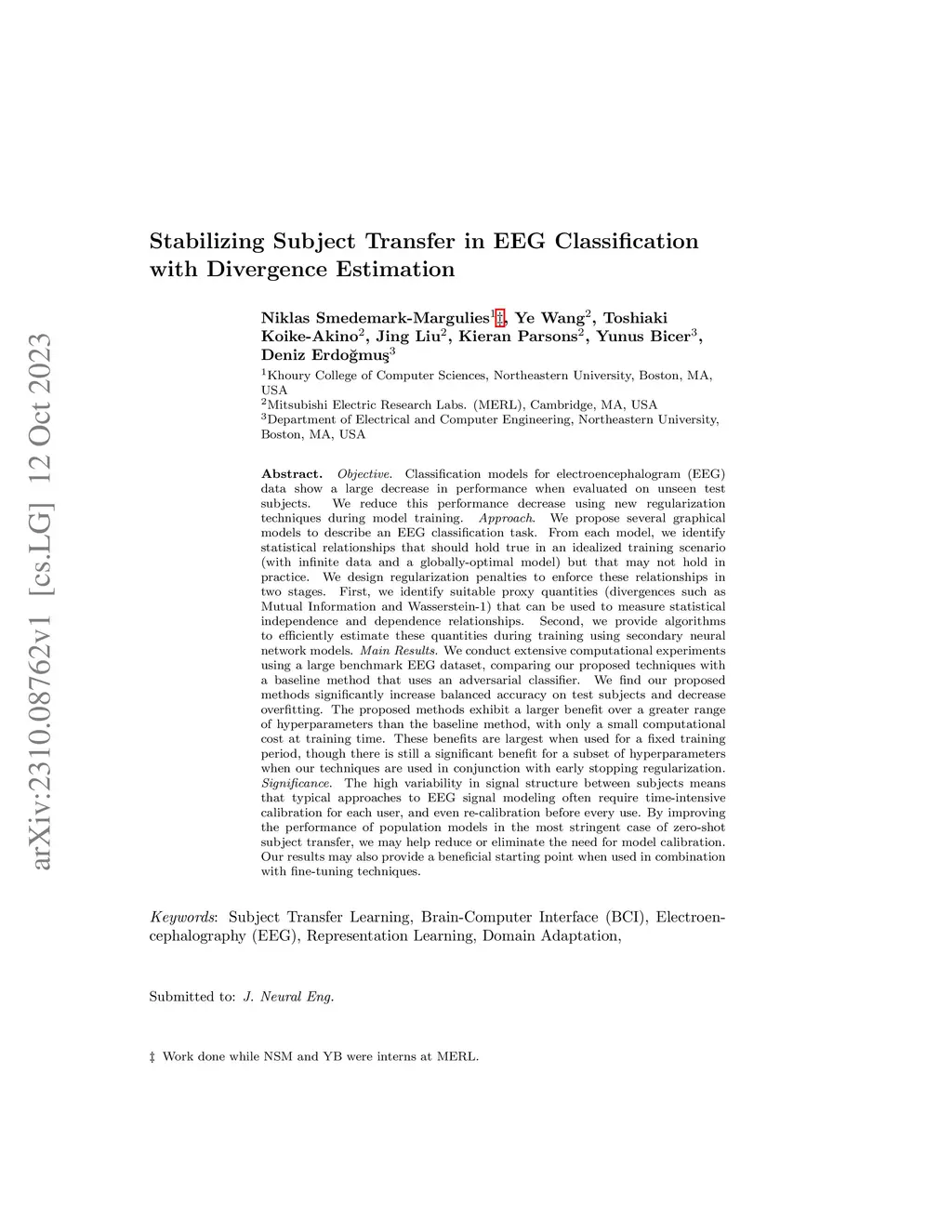 Stabilizing Subject Transfer in EEG Classification with Divergence