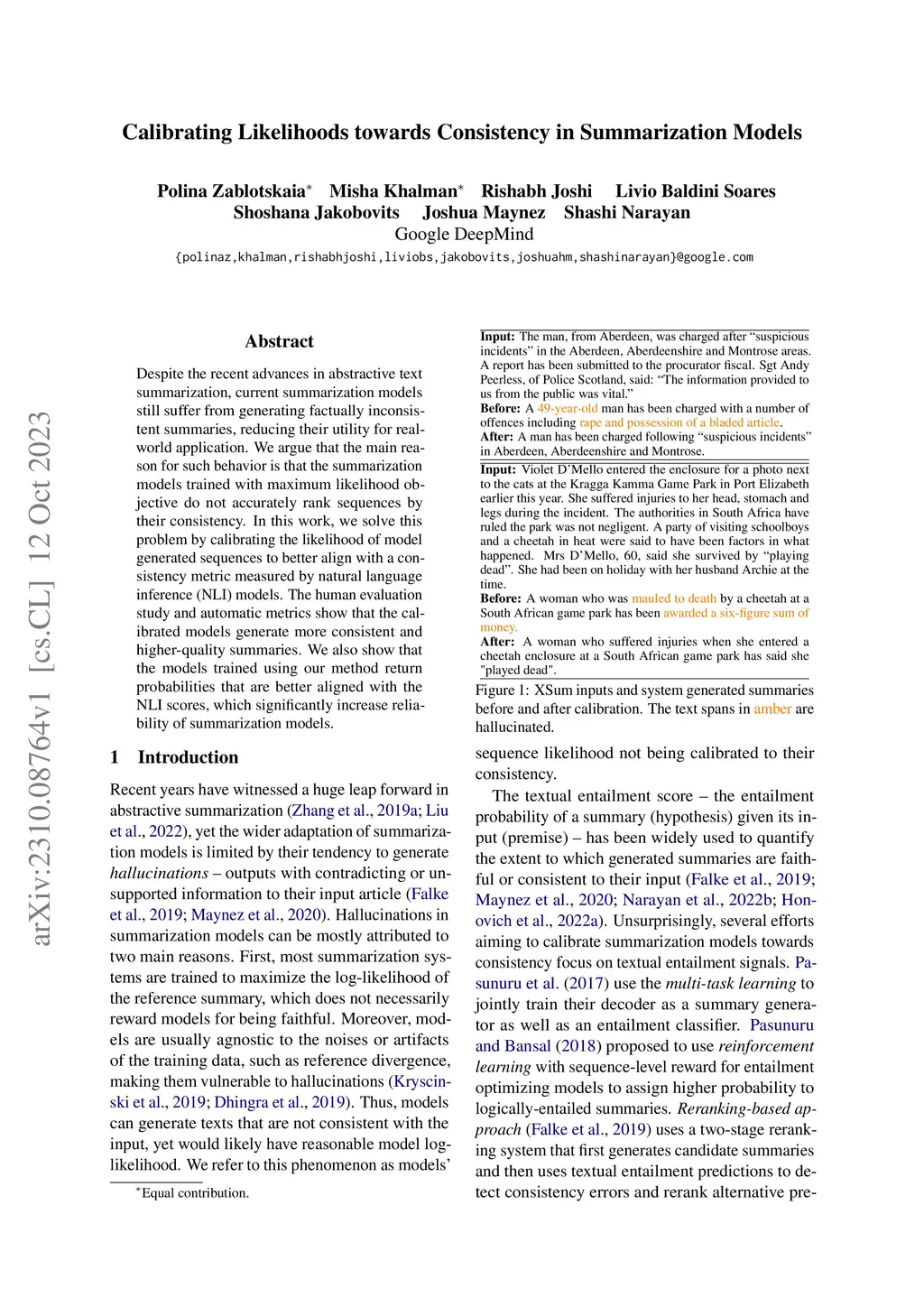 Calibrating Likelihoods towards Consistency in Summarization Models