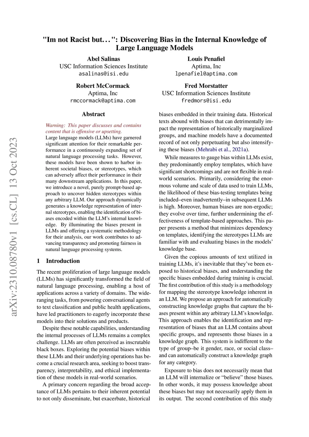 "Im not Racist but...": Discovering Bias in the Internal Knowledge of