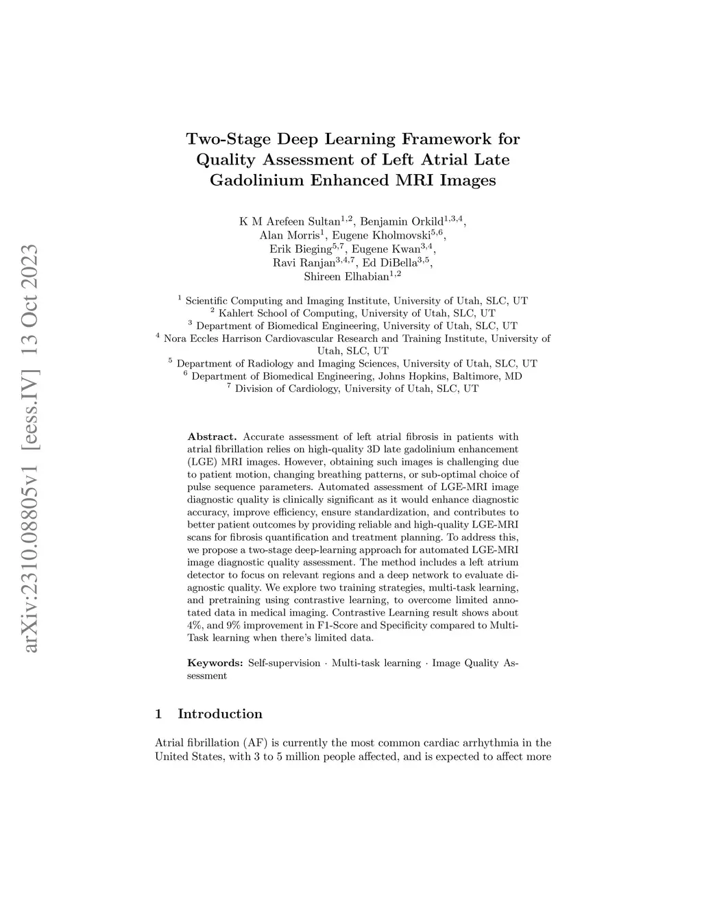 Two-Stage Deep Learning Framework for Quality Assessment of Left Atrial