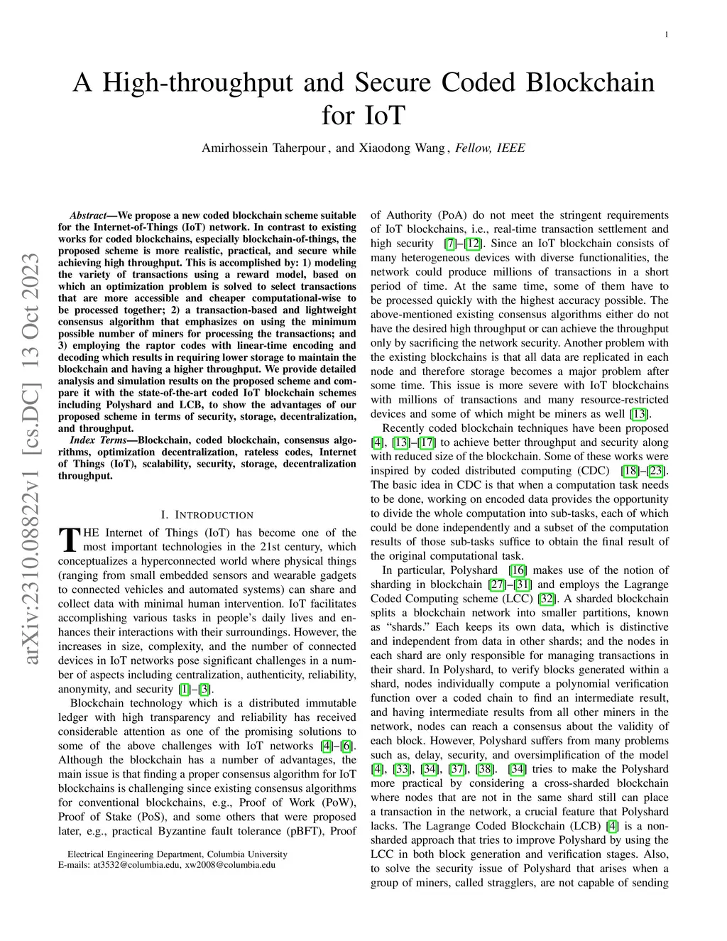 A High-throughput and Secure Coded Blockchain for IoT