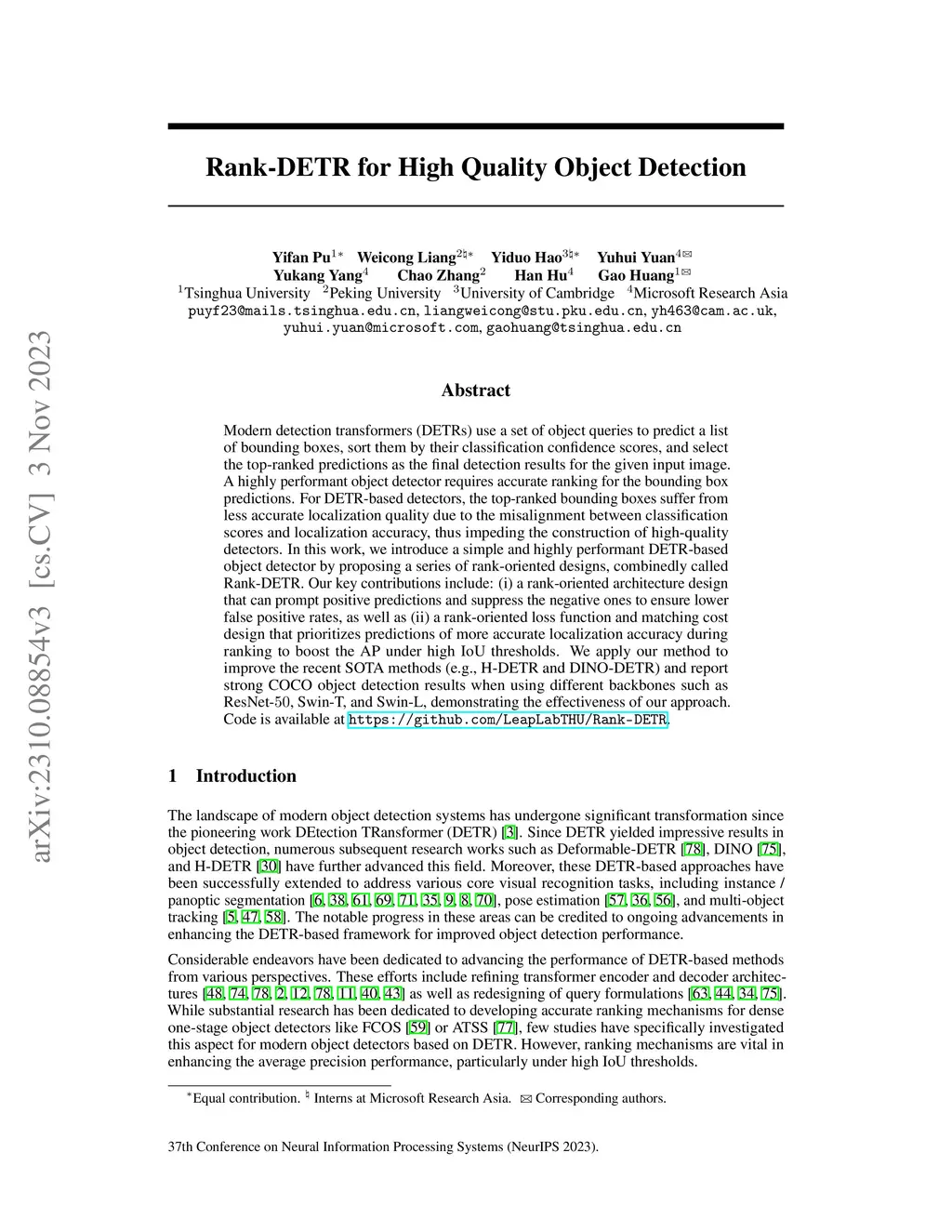 Rank-DETR for High Quality Object Detection