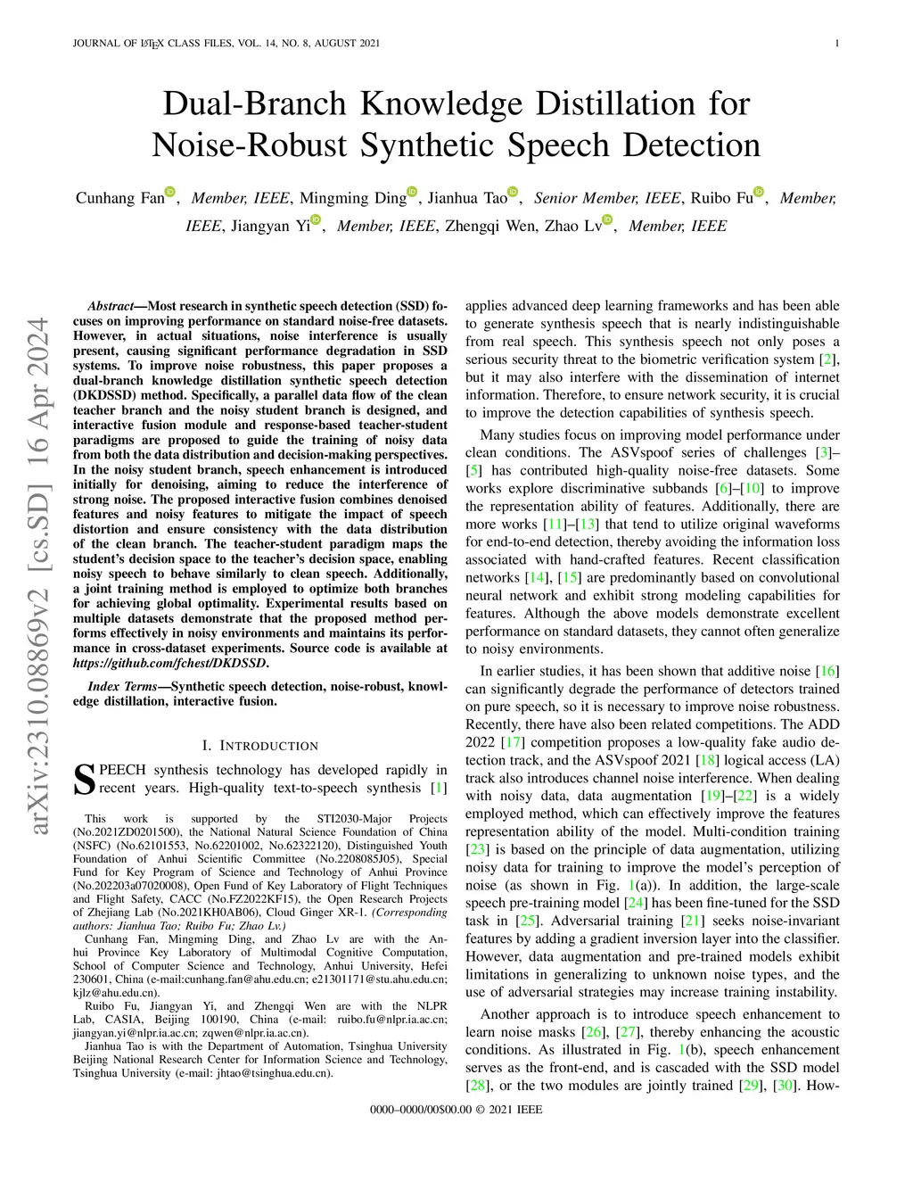 Dual-Branch Knowledge Distillation for Noise-Robust Synthetic Speech
