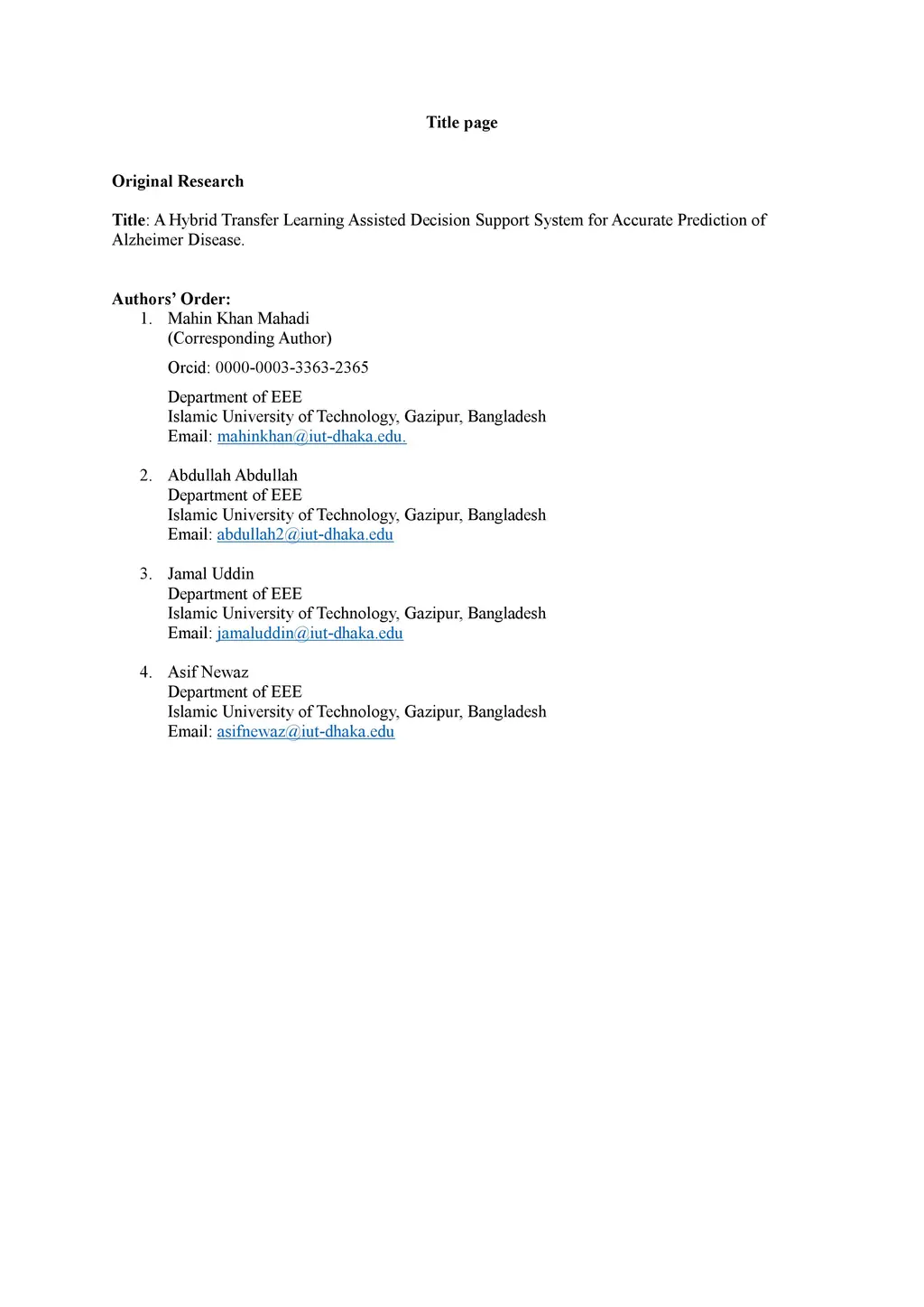 Prediction of Alzheimer Disease