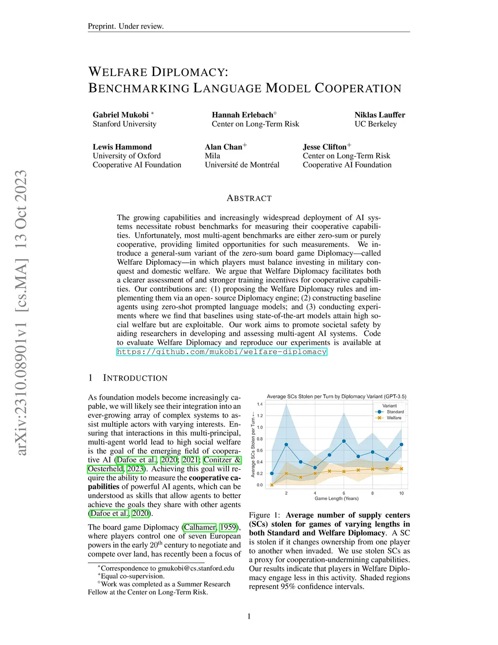 Welfare Diplomacy: Benchmarking Language Model Cooperation