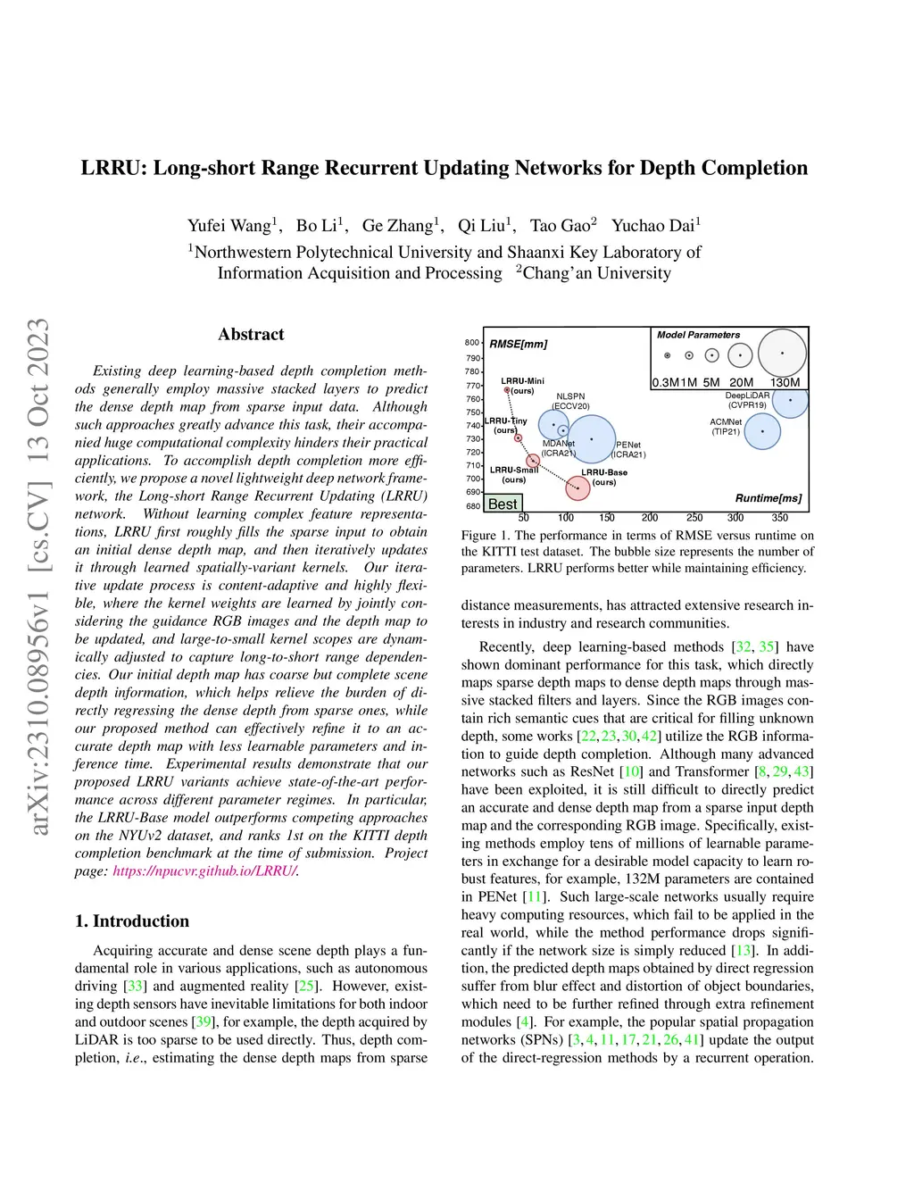 LRRU: Long-short Range Recurrent Updating Networks for Depth Completion