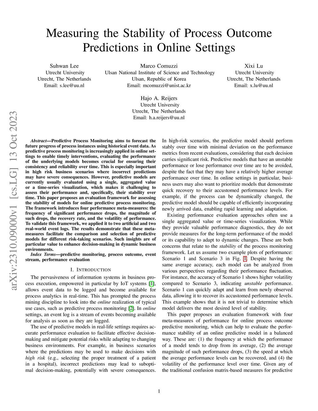 Predictive Process Monitoring aims to forecast the future progress of process instances using historical event data. As predictive process monitoring is increasingly applied in online settings to enable timely interventions, evaluating the performance of the underlying models becomes crucial for ensuring their consistency and reliability over time. This is especially important in high risk business scenarios where incorrect predictions may have severe consequences. However, predictive models are currently usually evaluated using a single, aggregated value or a time-series visualization, which makes it challenging to assess their performance and, specifically, their stability over time. This paper proposes an evaluation framework for assessing the stability of models for online predictive process monitoring. The framework introduces four performance meta-measures: the frequency of significant performance drops, the magnitude of such drops, the recovery rate, and the volatility of performance. To validate this framework, we applied it to two artificial and two real-world event logs. The results demonstrate that these meta-measures facilitate the comparison and selection of predictive models for different risk-taking scenarios. Such insights are of particular value to enhance decision-making in dynamic business environments.