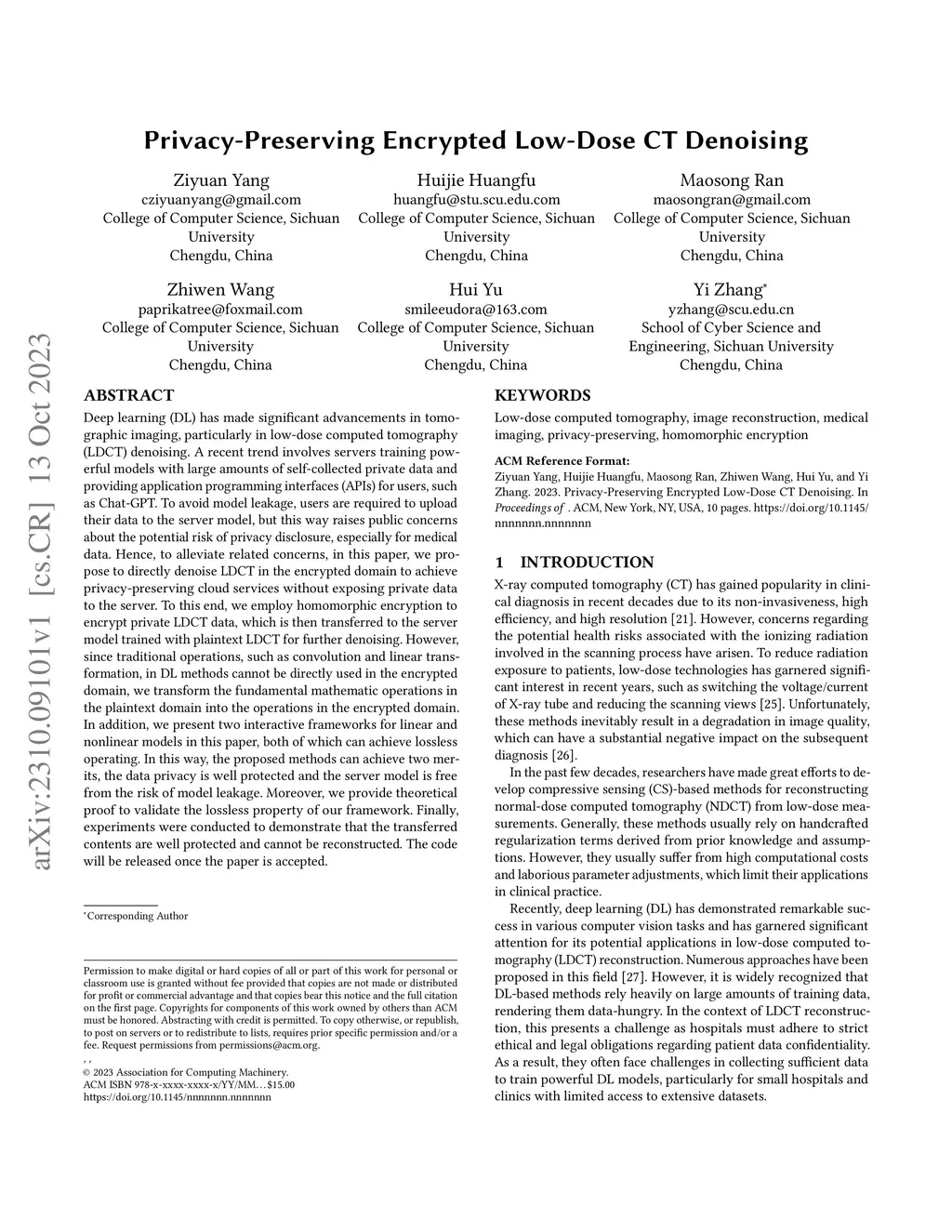 Privacy-Preserving Encrypted Low-Dose CT Denoising