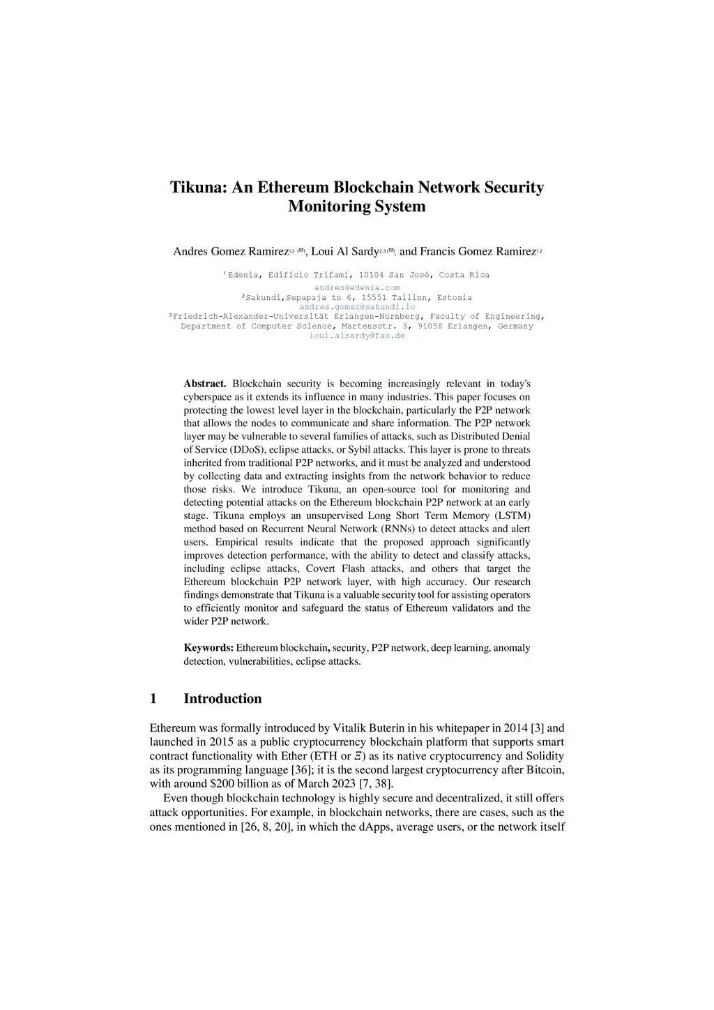 Tikuna: An Ethereum Blockchain Network Security Monitoring System