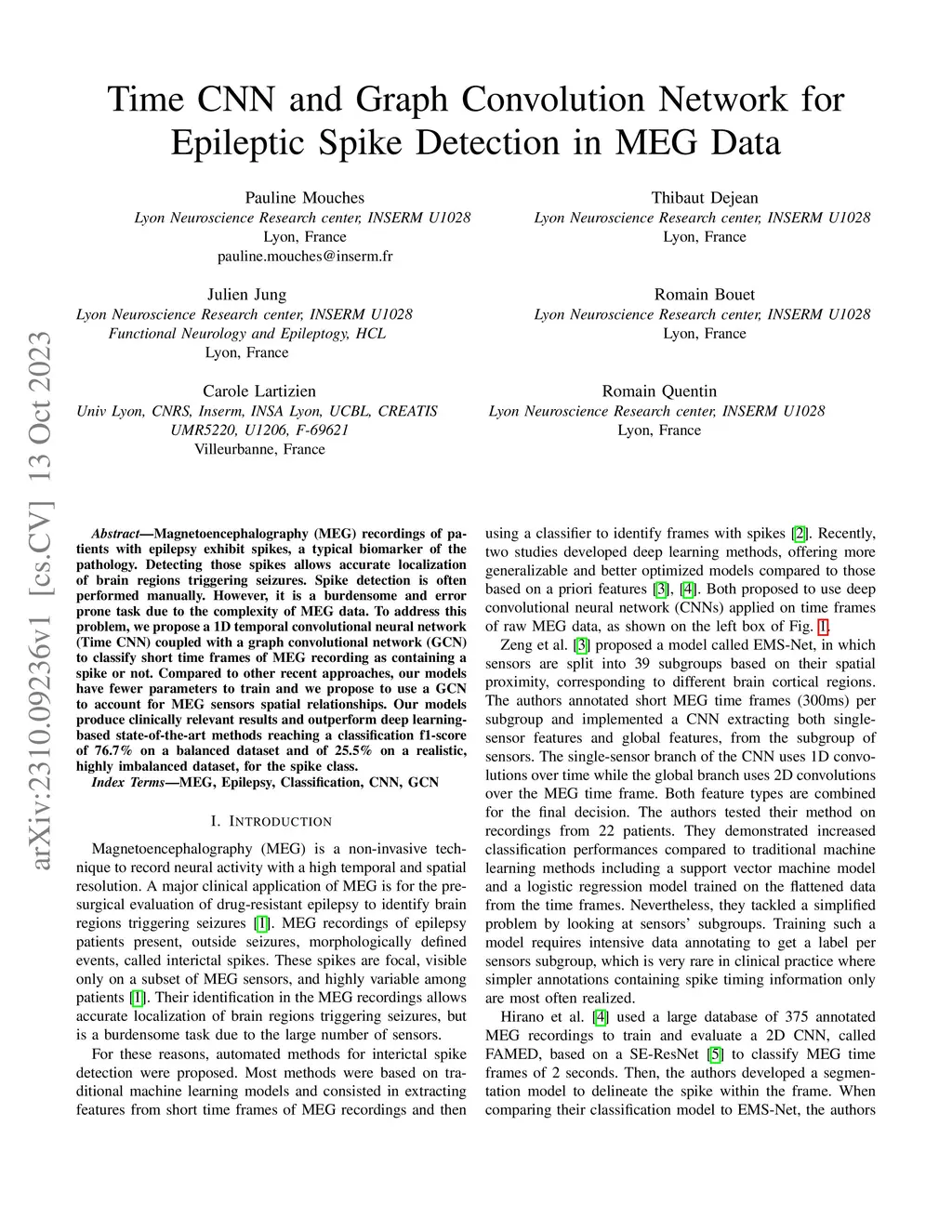 Time CNN and Graph Convolution Network for Epileptic Spike Detection in