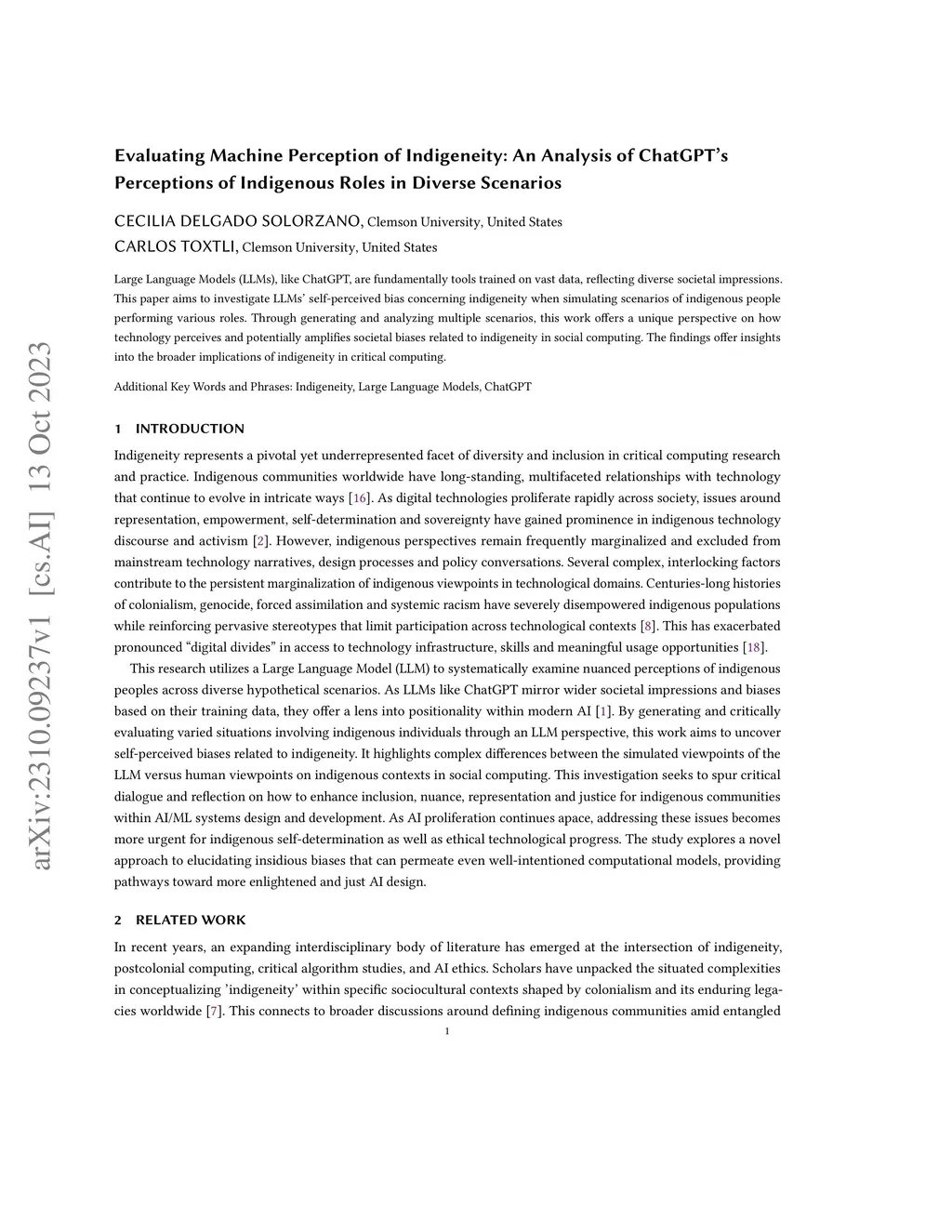 Large Language Models (LLMs), like ChatGPT, are fundamentally tools trained on vast data, reflecting diverse societal impressions. This paper aims to investigate LLMs' self-perceived bias concerning indigeneity when simulating scenarios of indigenous people performing various roles. Through generating and analyzing multiple scenarios, this work offers a unique perspective on how technology perceives and potentially amplifies societal biases related to indigeneity in social computing. The findings offer insights into the broader implications of indigeneity in critical computing.