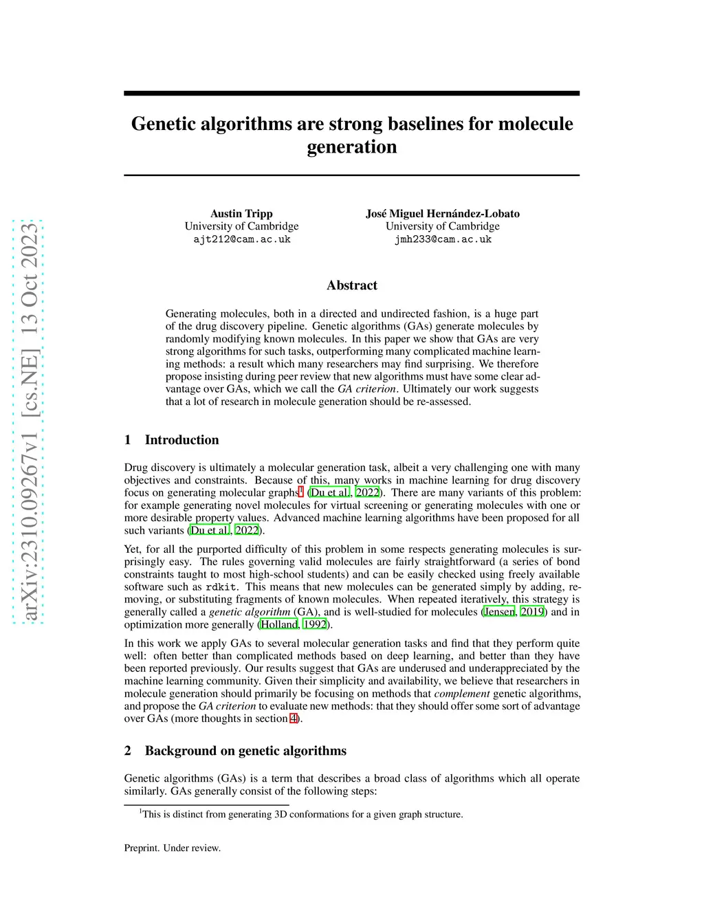 Generating molecules, both in a directed and undirected fashion, is a huge part of the drug discovery pipeline. Genetic algorithms (GAs) generate molecules by randomly modifying known molecules. In this paper we show that GAs are very strong algorithms for such tasks, outperforming many complicated machine learning methods: a result which many researchers may find surprising. We therefore propose insisting during peer review that new algorithms must have some clear advantage over GAs, which we call the GA criterion. Ultimately our work suggests that a lot of research in molecule generation should be re-assessed.