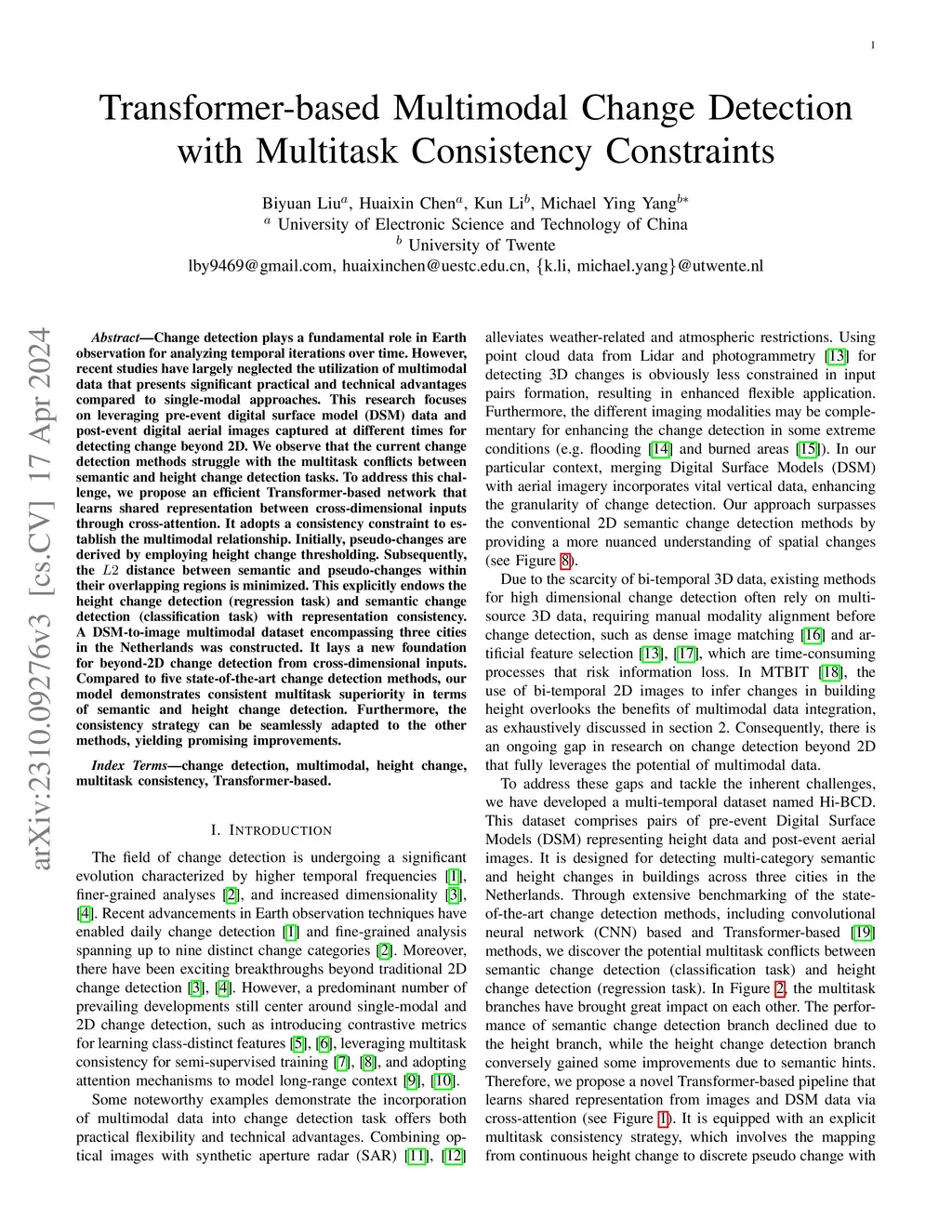 Transformer-based Multimodal Change Detection with Multitask Consistency