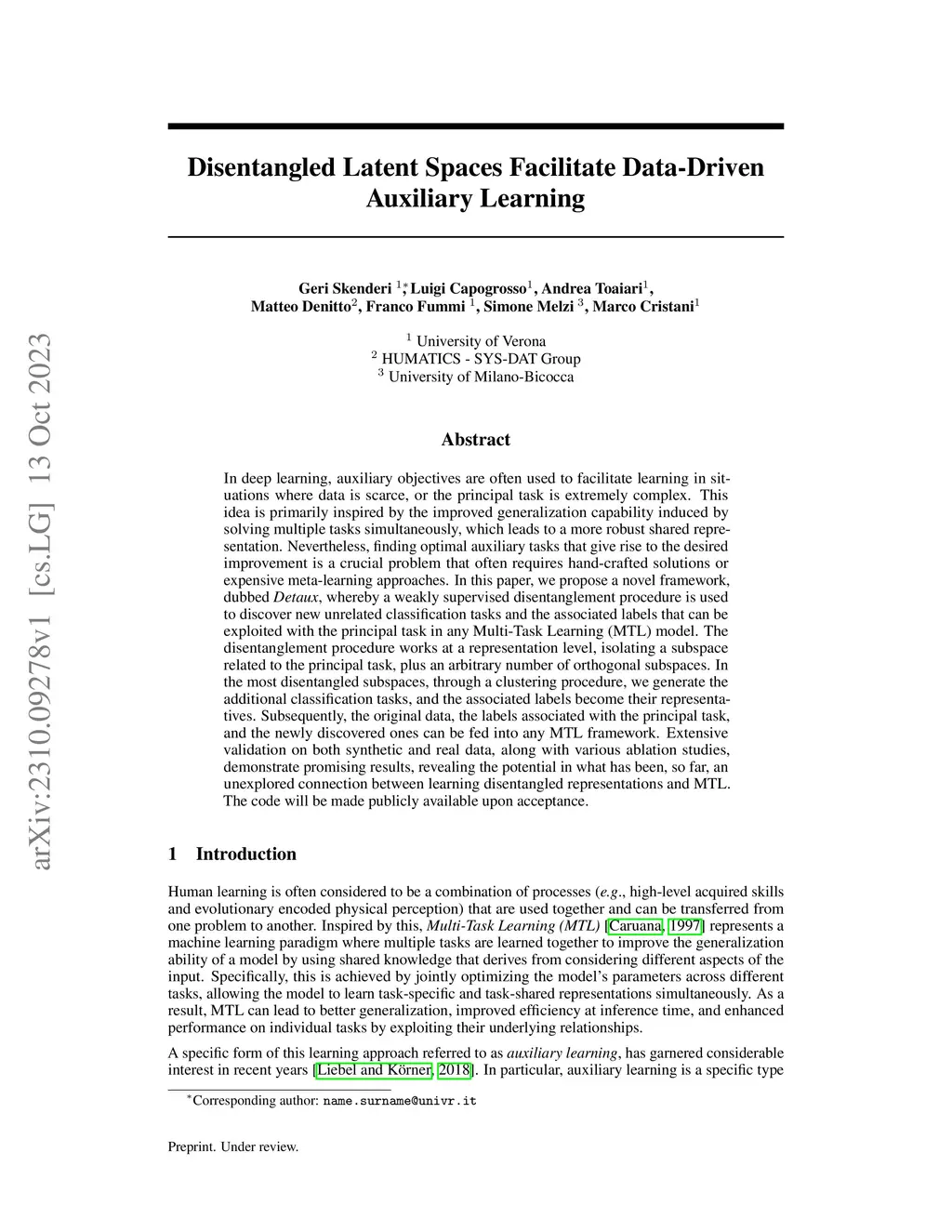 Disentangled Latent Spaces Facilitate Data-Driven Auxiliary Learning