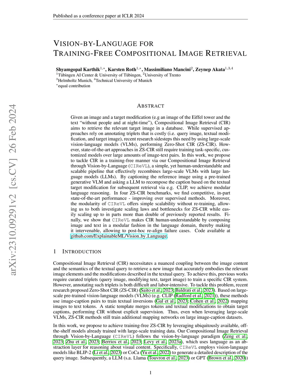 Vision-by-Language for Training-Free Compositional Image Retrieval