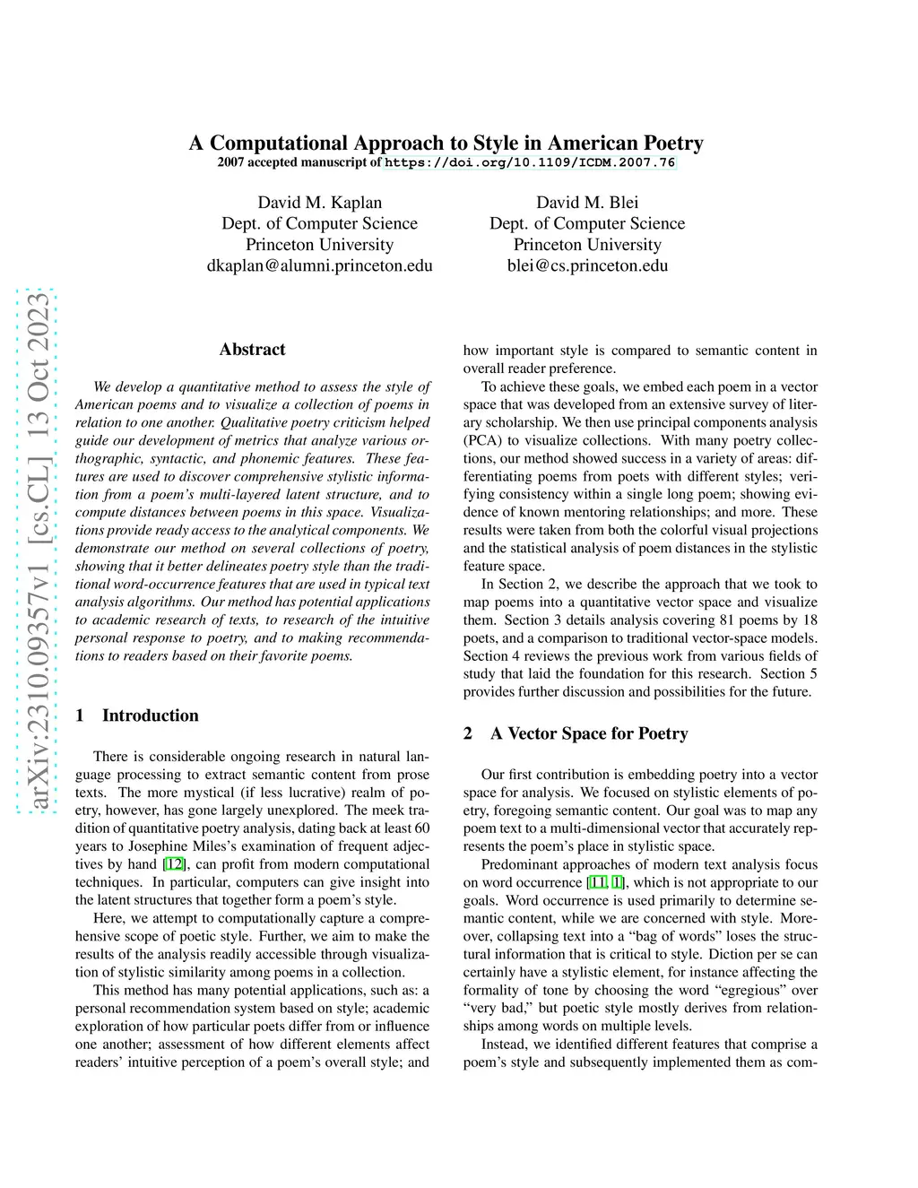 A Computational Approach to Style in American Poetry