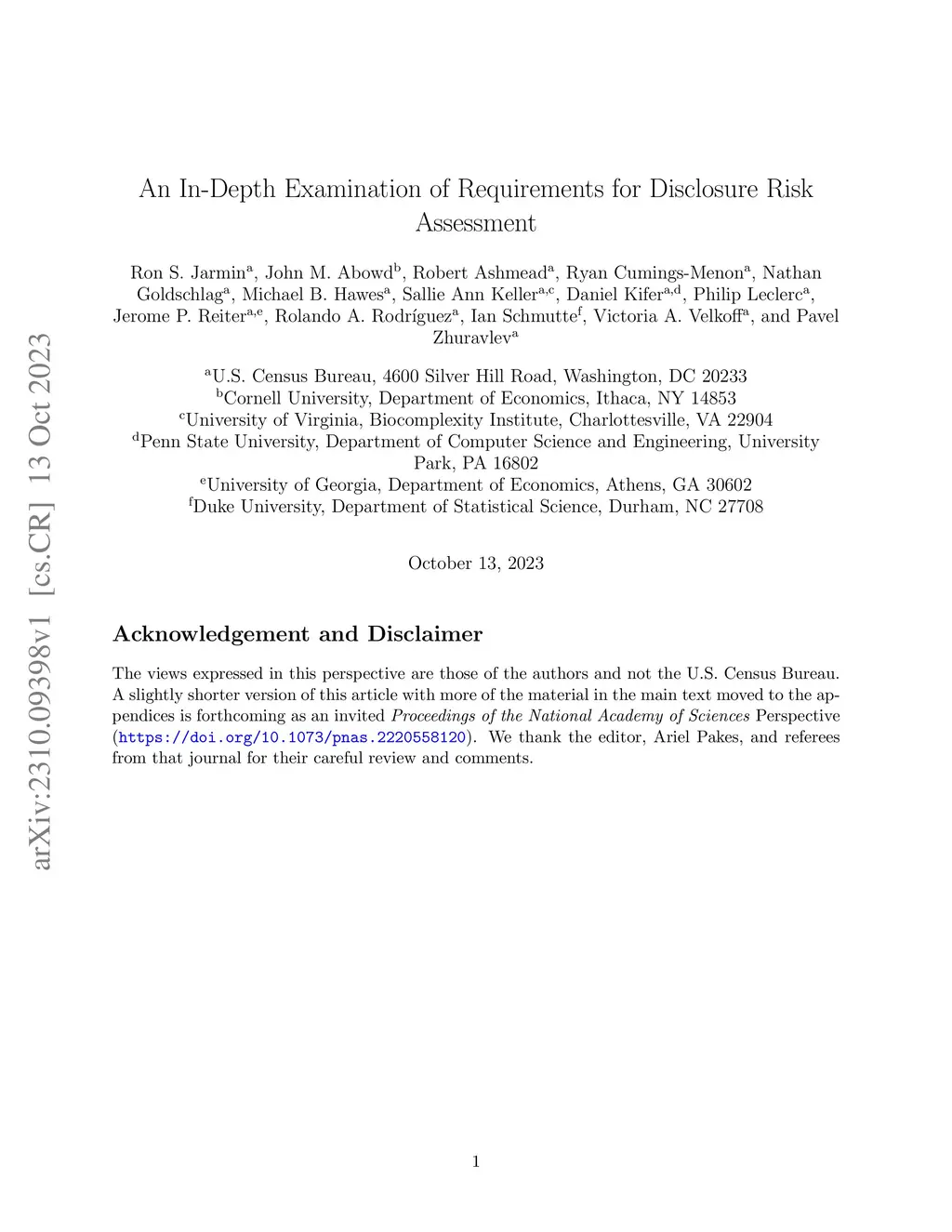 An In-Depth Examination of Requirements for Disclosure Risk Assessment