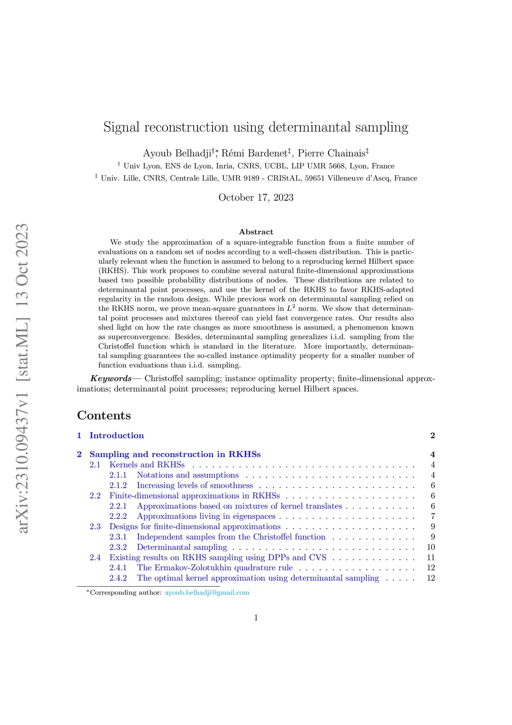 We study the approximation of a square-integrable function from a finite number of evaluations on a random set of nodes according to a well-chosen distribution. This is particularly relevant when the function is assumed to belong to a reproducing kernel Hilbert space (RKHS). This work proposes to combine several natural finite-dimensional approximations based two possible probability distributions of nodes. These distributions are related to determinantal point processes, and use the kernel of the RKHS to favor RKHS-adapted regularity in the random design. While previous work on determinantal sampling relied on the RKHS norm, we prove mean-square guarantees in norm. We show that determinantal point processes and mixtures thereof can yield fast convergence rates. Our results also shed light on how the rate changes as more smoothness is assumed, a phenomenon known as superconvergence. Besides, determinantal sampling generalizes i.i.d. sampling from the Christoffel function which is standard in the literature. More importantly, determinantal sampling guarantees the so-called instance optimality property for a smaller number of function evaluations than i.i.d. sampling.