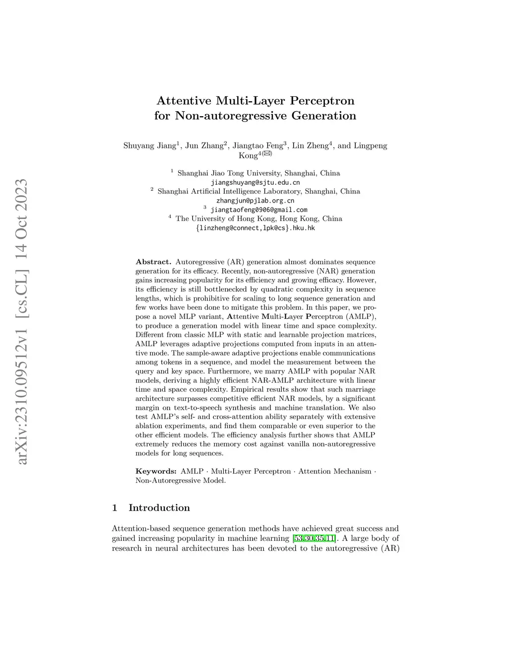 Attentive Multi-Layer Perceptron for Non-autoregressive Generation