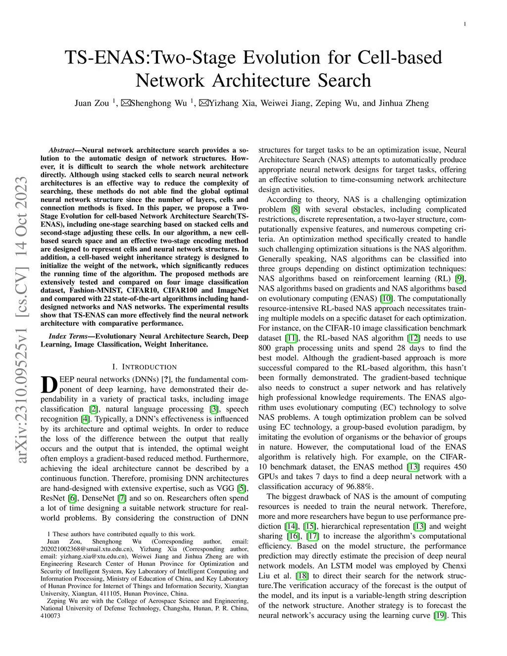 TS-ENAS:Two-Stage Evolution for Cell-based Network Architecture Search
