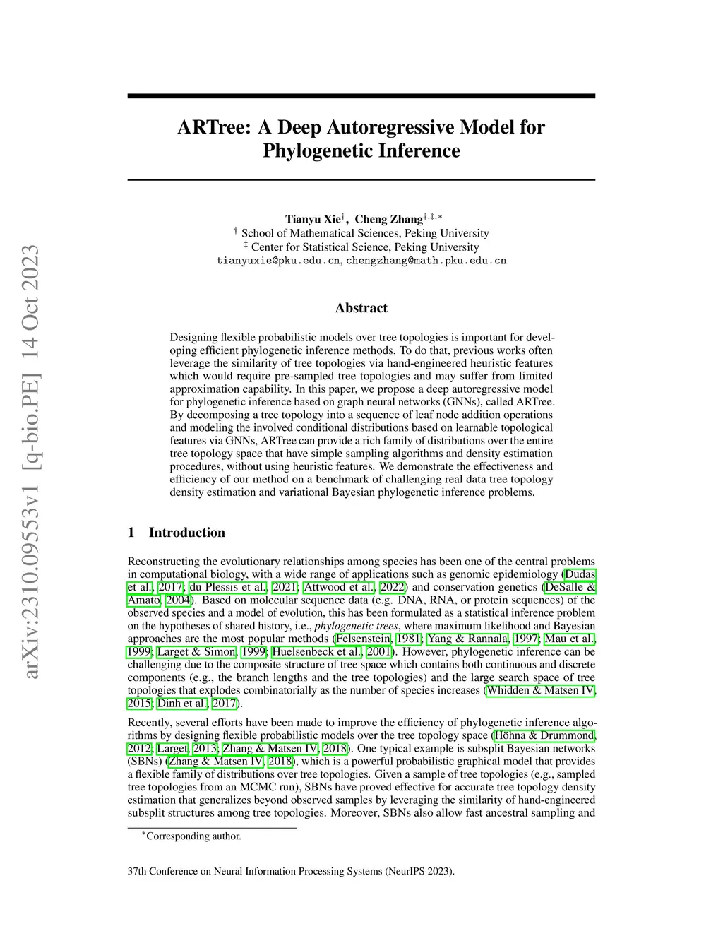 ARTree: A Deep Autoregressive Model for Phylogenetic Inference