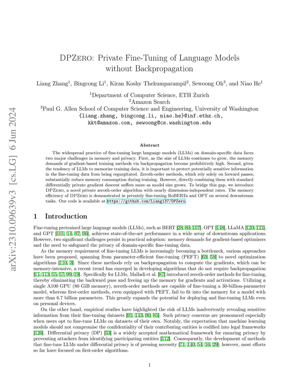 DPZero: Private Fine-Tuning of Language Models without Backpropagation