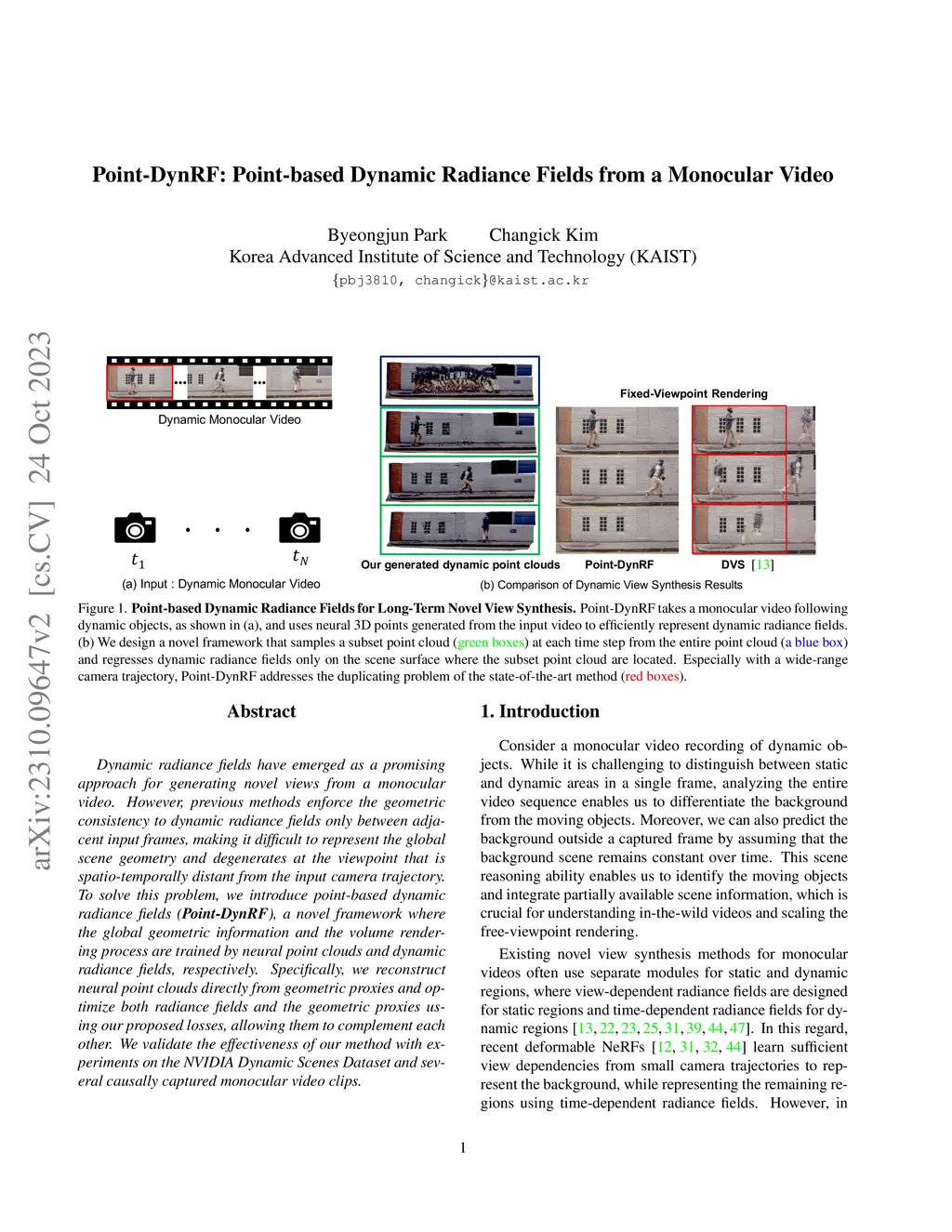 Point-DynRF: Point-based Dynamic Radiance Fields from a Monocular Video