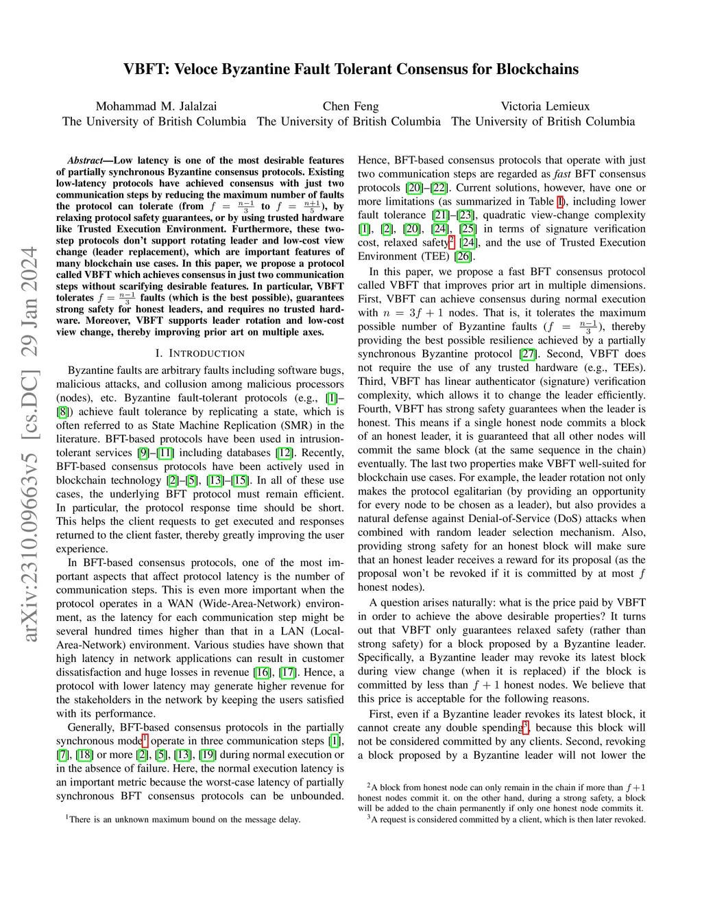 VBFT: Veloce Byzantine Fault Tolerant Consensus for Blockchains