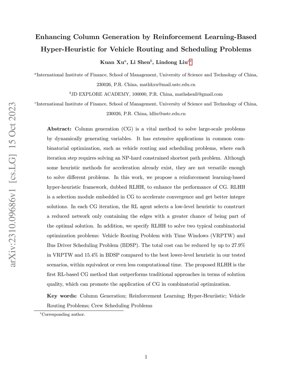 Hyper-Heuristic for Vehicle Routing and Scheduling Problems