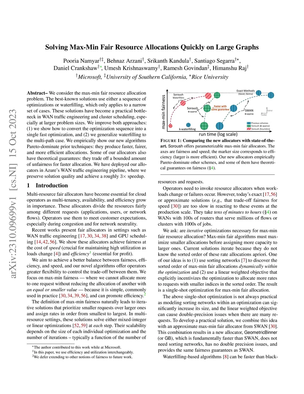 We consider the max-min fair resource allocation problem. The best-known solutions use either a sequence of optimizations or waterfilling, which only applies to a narrow set of cases. These solutions have become a practical bottleneck in WAN traffic engineering and cluster scheduling, especially at larger problem sizes. We improve both approaches: (1) we show how to convert the optimization sequence into a single fast optimization, and (2) we generalize waterfilling to the multi-path case. We empirically show our new algorithms Pareto-dominate prior techniques: they produce faster, fairer, and more efficient allocations. Some of our allocators also have theoretical guarantees: they trade off a bounded amount of unfairness for faster allocation. We have deployed our allocators in Azure's WAN traffic engineering pipeline, where we preserve solution quality and achieve a roughly speedup.