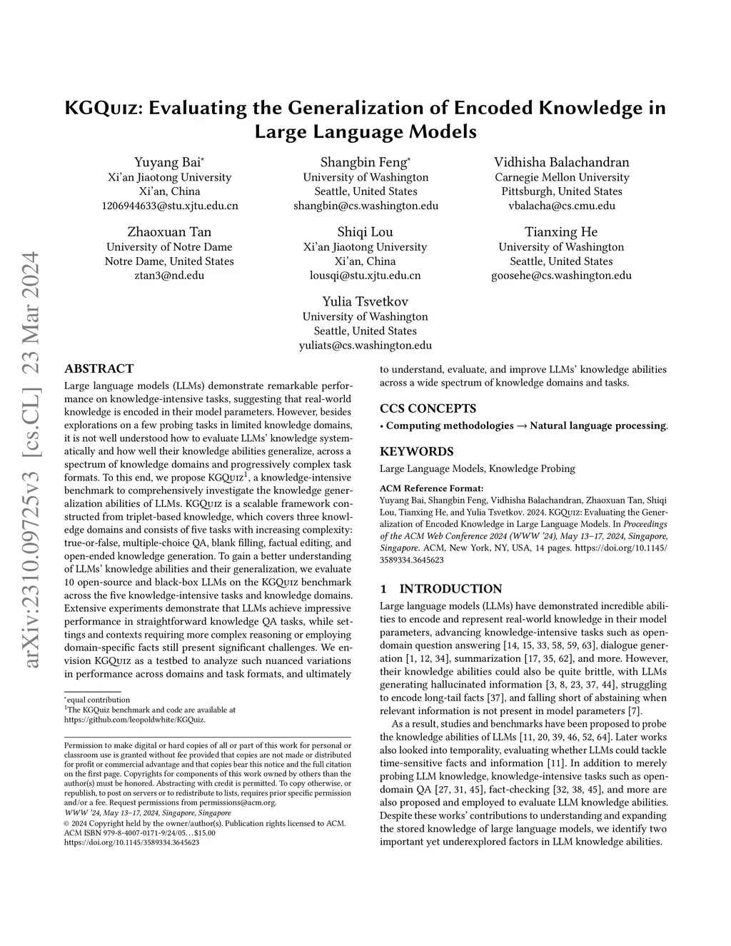 KGQuiz: Evaluating the Generalization of Encoded Knowledge in Large