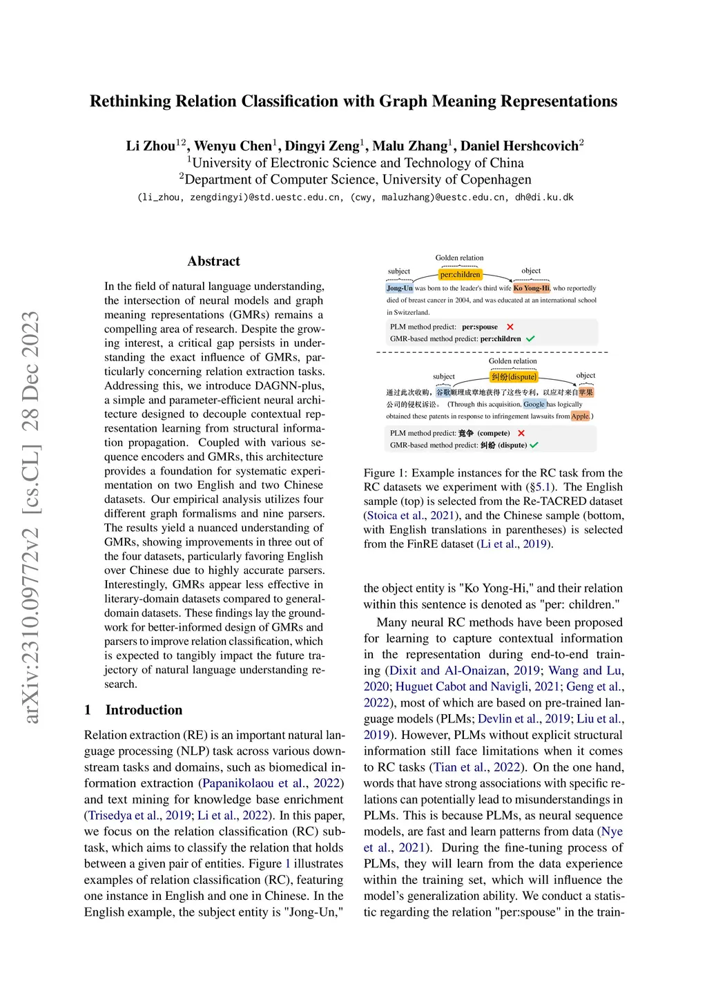 In the field of natural language understanding, the intersection of neural models and graph meaning representations (GMRs) remains a compelling area of research. Despite the growing interest, a critical gap persists in understanding the exact influence of GMRs, particularly concerning relation extraction tasks. Addressing this, we introduce DAGNN-plus, a simple and parameter-efficient neural architecture designed to decouple contextual representation learning from structural information propagation. Coupled with various sequence encoders and GMRs, this architecture provides a foundation for systematic experimentation on two English and two Chinese datasets. Our empirical analysis utilizes four different graph formalisms and nine parsers. The results yield a nuanced understanding of GMRs, showing improvements in three out of the four datasets, particularly favoring English over Chinese due to highly accurate parsers. Interestingly, GMRs appear less effective in literary-domain datasets compared to general-domain datasets. These findings lay the groundwork for better-informed design of GMRs and parsers to improve relation classification, which is expected to tangibly impact the future trajectory of natural language understanding research.