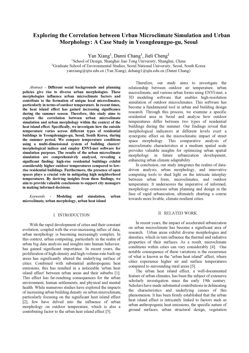 Different social backgrounds and planning policies give rise to diverse urban morphologies. These morphologies influence urban microclimate factors and contribute to the formation of unique local microclimates, particularly in terms of outdoor temperature. In recent times, the heat island effect has gained increasing significance during the summer season. Therefore, this study aims to explore the correlation between urban microclimate simulation and urban morphology within the context of the heat island effect. Specifically, we investigate how the outside temperature varies across different types of residential buildings in Yeongdeungpo-gu, Seoul, South Korea, during the summer period. We compare temperature conditions using a multi-dimensional system of building clusters' morphological indices and employ ENVI-met software for simulation purposes. The results of the urban microclimate simulation are comprehensively analyzed, revealing a significant finding: high-rise residential buildings exhibit considerably higher outdoor temperatures compared to low-rise residential buildings. Furthermore, the presence of open spaces plays a crucial role in mitigating high neighborhood temperatures. By deriving insights from these findings, we aim to provide valuable conclusions to support city managers in making informed decisions.