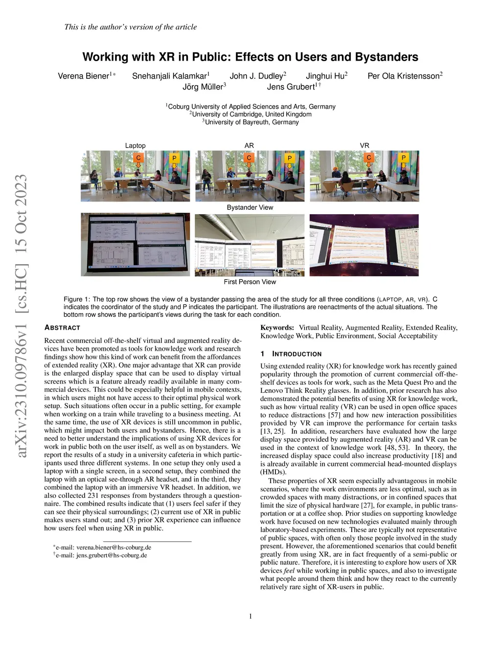 Working with XR in Public: Effects on Users and Bystanders