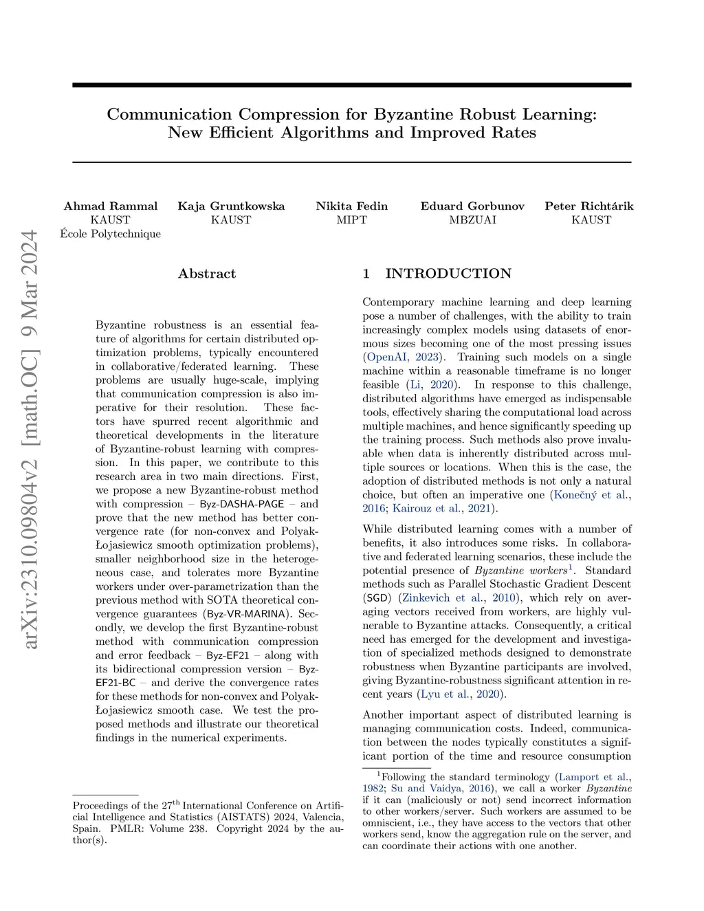 Communication Compression for Byzantine Robust Learning: New Efficient