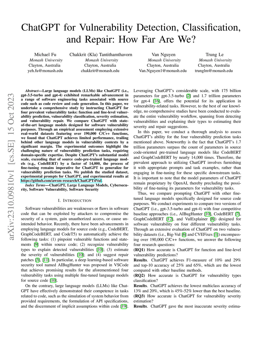 ChatGPT for Vulnerability Detection, Classification, and Repair: How Far