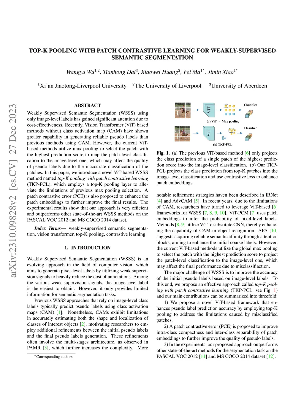 Top-K Pooling with Patch Contrastive Learning for Weakly-Supervised
