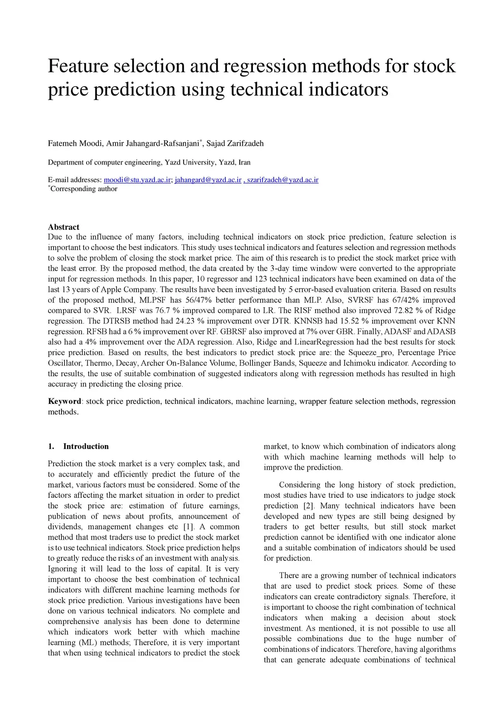 Integrating feature selection and regression methods with technical indicators for predicting Apple Inc. stock prices