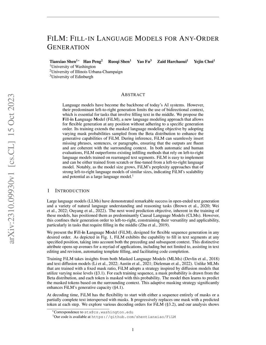 FiLM: Fill-in Language Models for Any-Order Generation