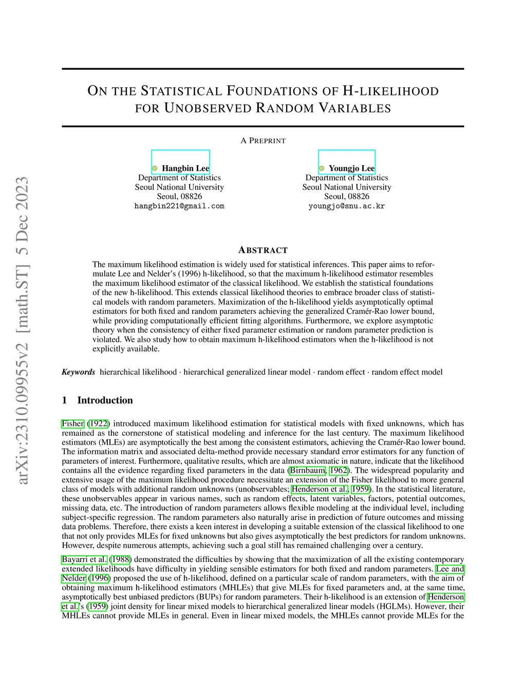 The maximum likelihood estimation is widely used for statistical inferences. This paper aims to reformulate Lee and Nelder's (1996) h-likelihood, so that the maximum h-likelihood estimator resembles the maximum likelihood estimator of the classical likelihood. We establish the statistical foundations of the new h-likelihood. This extends classical likelihood theories to embrace broader class of statistical models with random parameters. Maximization of the h-likelihood yields asymptotically optimal estimators for both fixed and random parameters achieving the generalized Cram\ér-Rao lower bound, while providing computationally efficient fitting algorithms. Furthermore, we explore asymptotic theory when the consistency of either fixed parameter estimation or random parameter prediction is violated. We also study how to obtain maximum h-likelihood estimators when the h-likelihood is not explicitly available.