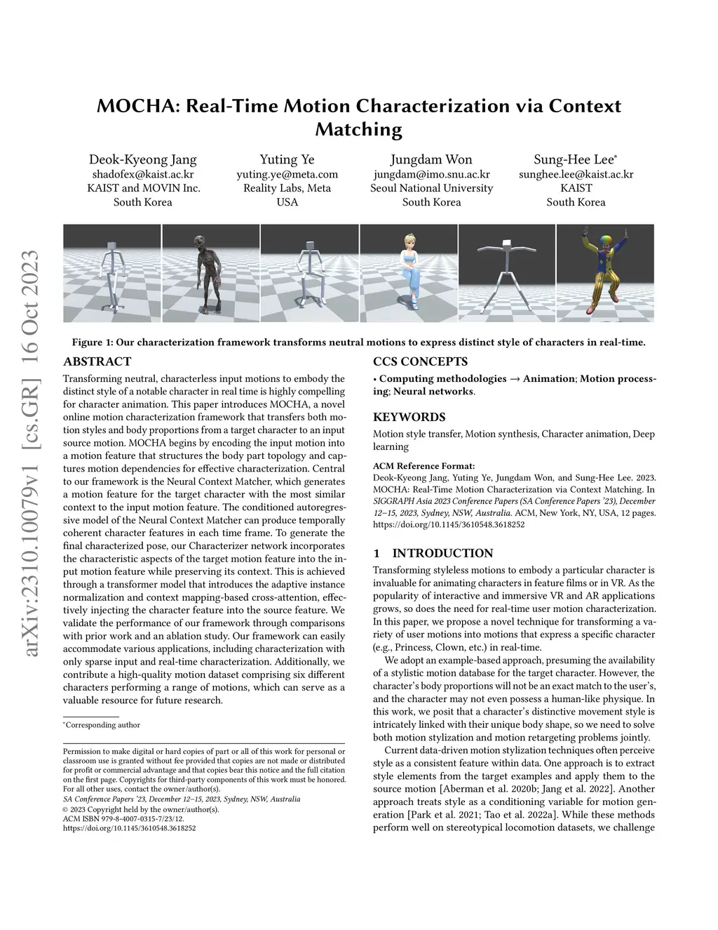 MOCHA: Real-Time Motion Characterization via Context Matching
