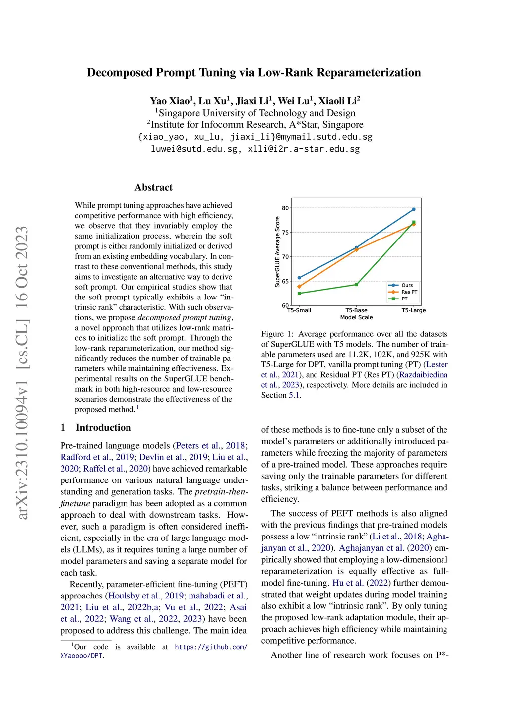 Decomposed Prompt Tuning via Low-Rank Reparameterization